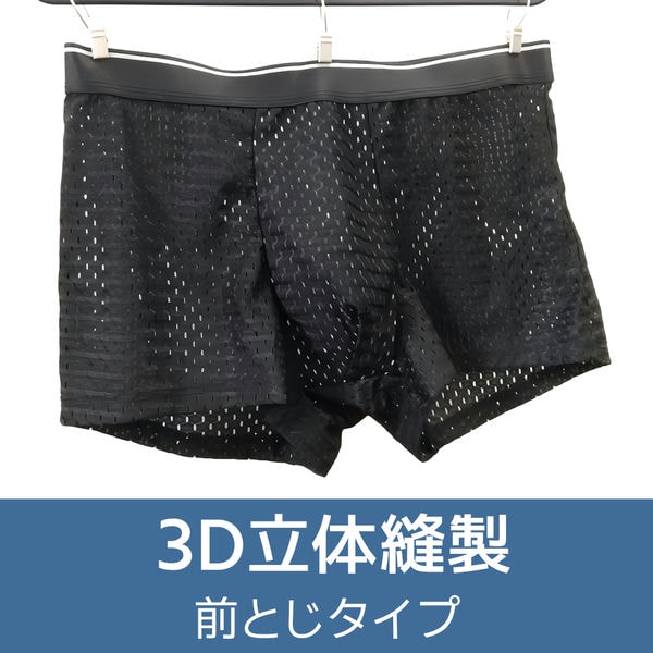 ボクサーパンツ メッシュ 立体縫製 前とじ 前あて布付き メンズ 男性 インナー 下着 フィット感 伸縮性 通気性 速乾性 涼しい 軽い 蒸れにくい 軽量 綿 ポリエステル 黒 ブラック 100298