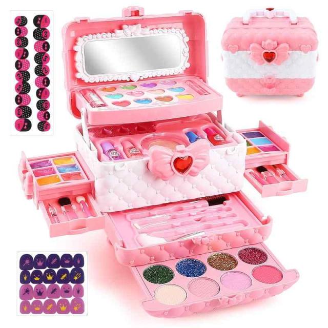 メイクセット 女の子:このメイクセット女の子 おもちゃには、メイクとネイルに必要なものがほとんどすべて入っています。マットアイシャドウ、グリッターアイシャドウ、チーク、マニキュア、リップスティック、パウダー、メイクスポンジ、爪やすり、フィンガーセパレーター、メイクブラシ、鏡付きメイクケースが含まれています。