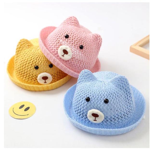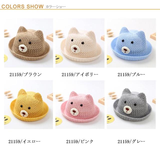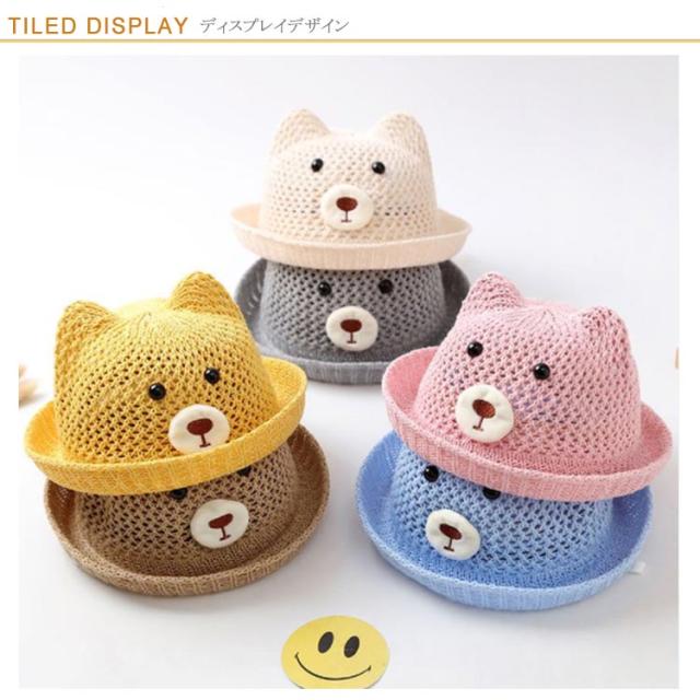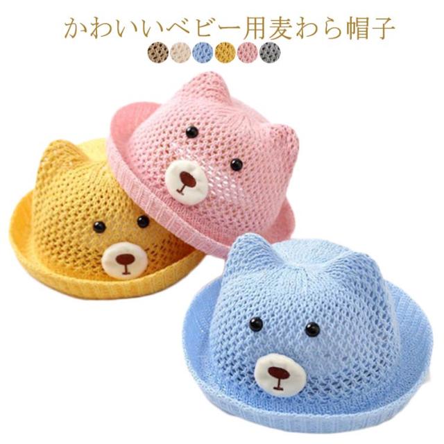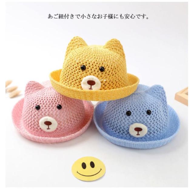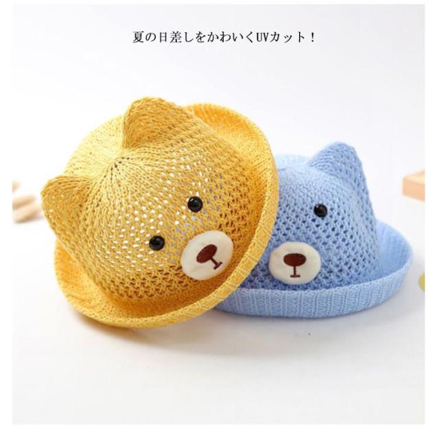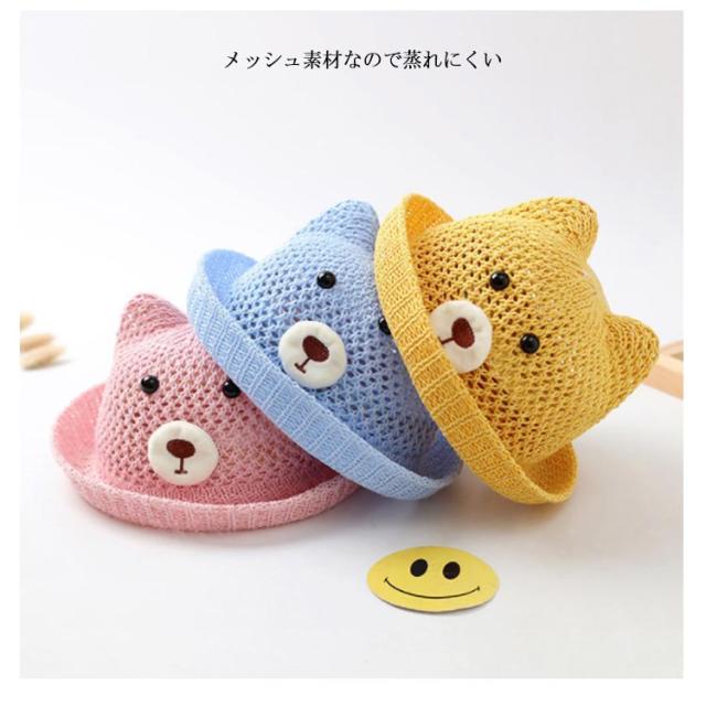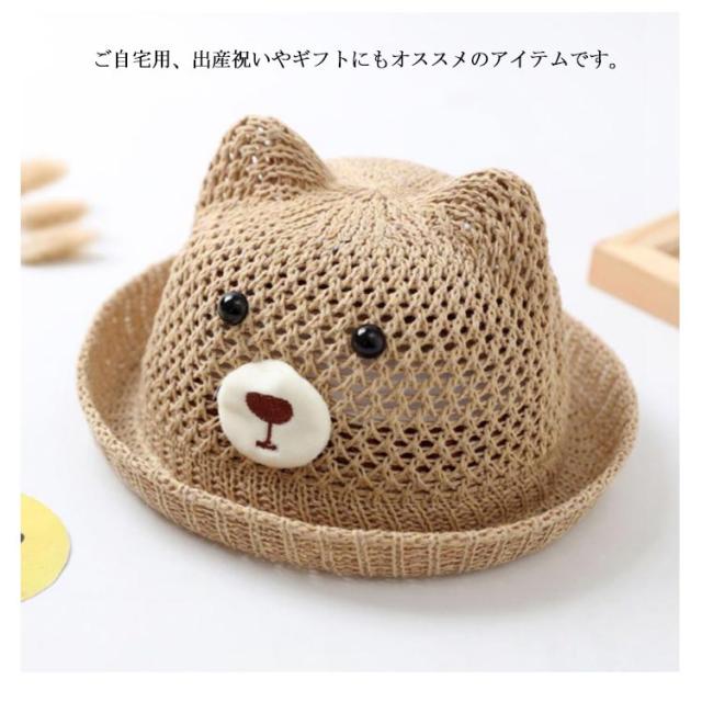 ベビー 帽子 赤ちゃん 帽子 耳付き ハット 熊耳 ベビー 可愛い クマ メッシュ 蒸れない 通気性 夏 ストローハット 涼しい 日よけ 紫外線対策 おしゃれ 女の子 男の子 無地 春 夏 シェード 麦わら帽子 子供服 お出かけ 送料無料