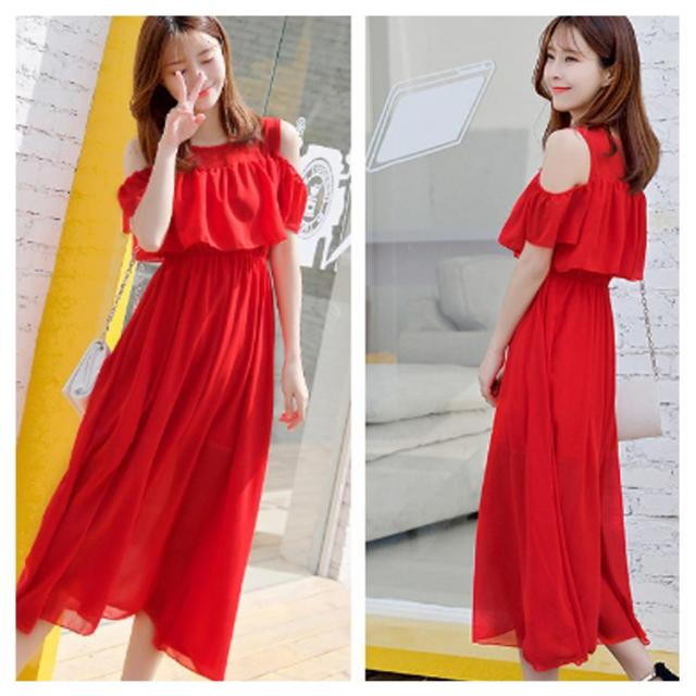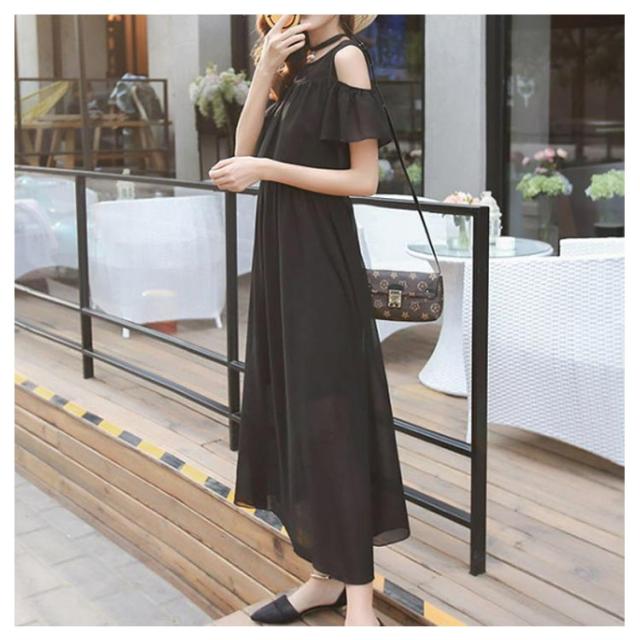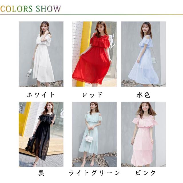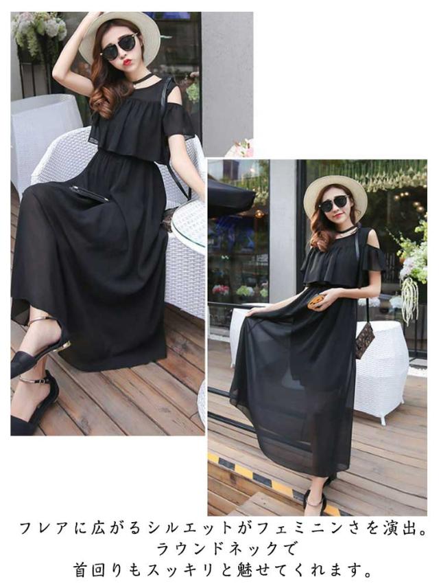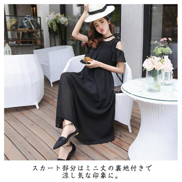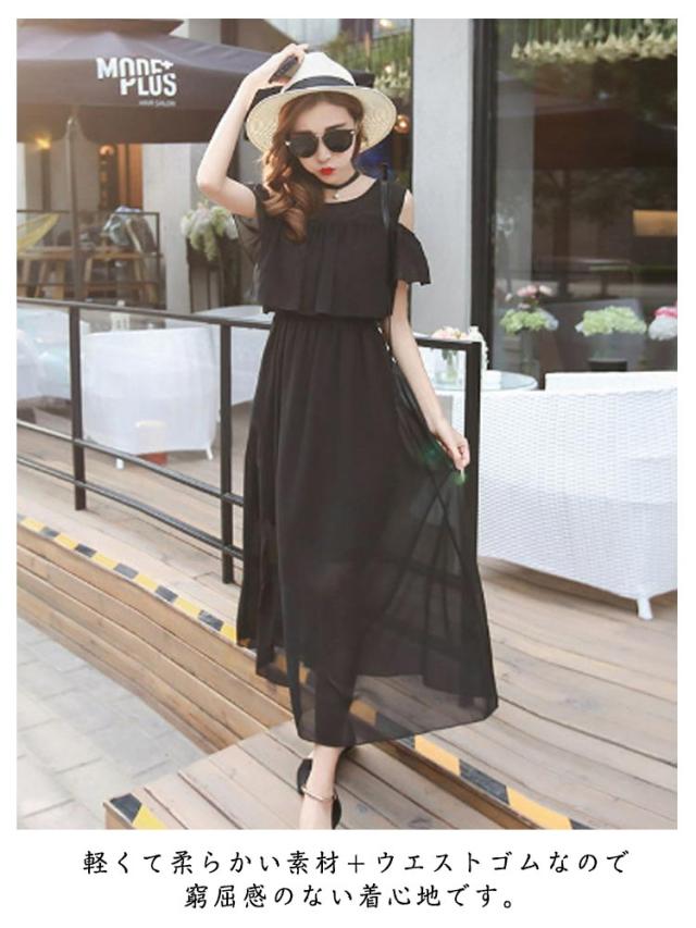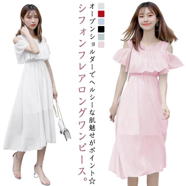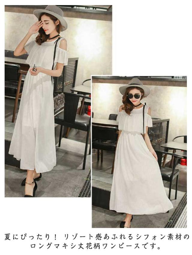 マキシワンピース オフショルダー 肩出しワンピース ボヘミアン シフォンワンピース ロング丈 フレアワンピース 花柄 無地 フリル袖 透け感 サンドレス マキン丈 夏ワンピー 体型カバー Aライン リゾート 肩だし カジュアル パーティー デート 可愛い 送料無料