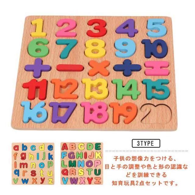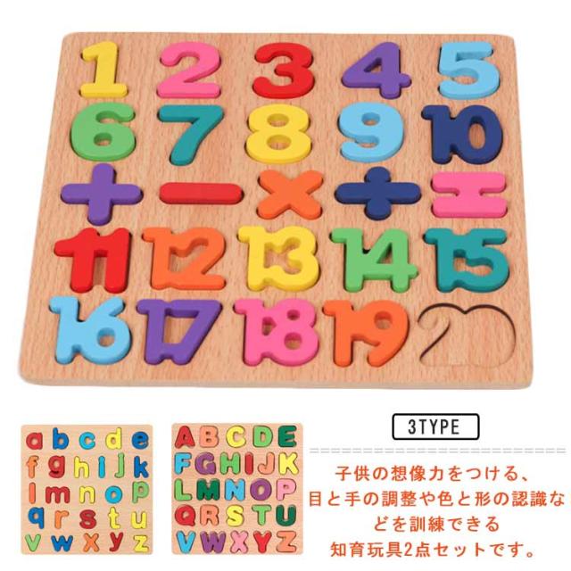 2枚セット 型はめパズル 木製 木のおもちゃ アルファベット パズル 英語 数字 木製パズル 木製おもちゃ つみき 積み木 知育 脳トレ 子供 トレニンーグ 数字 英語学習 知育玩具 誕生日 ギフト 贈り物 出産祝い 入園お祝い 幼児向け 1歳 2歳 3歳
