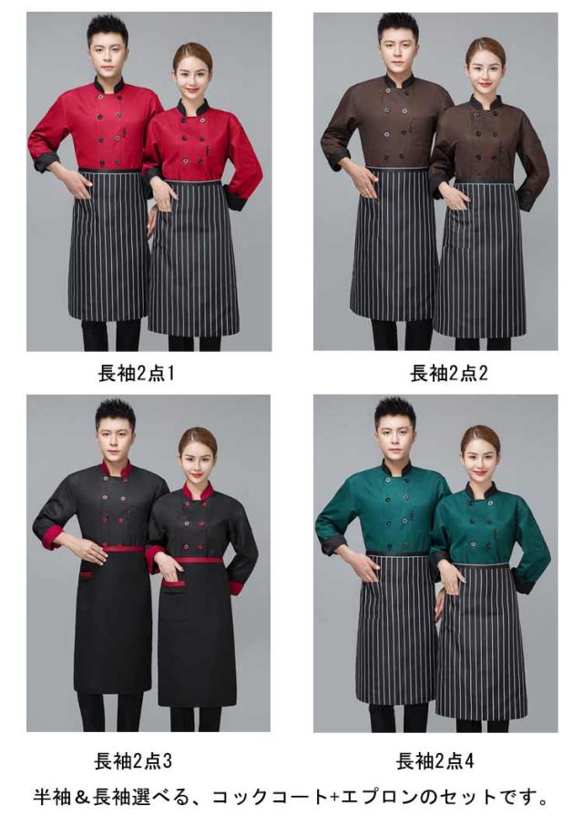 シャツ 飲食店 ユニフォーム コックシャツ+エプロン 2点セット 袖選べる コックコート コック服 コックウェア トップス レストラン 厨房用制服 飲食店 パン屋 調理服 シェフ制服 厨房用制服 ケーキ屋 カフェ メンズ レディース 男性 女性