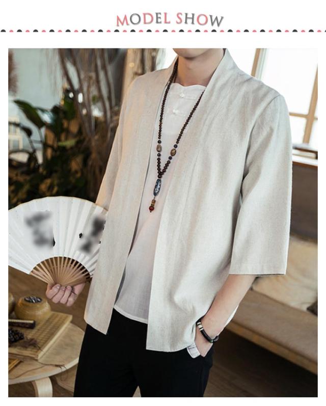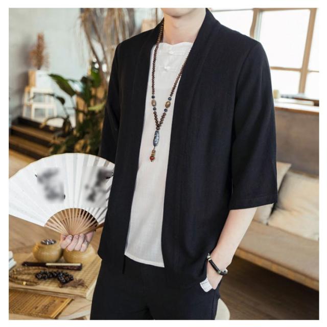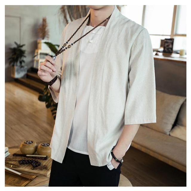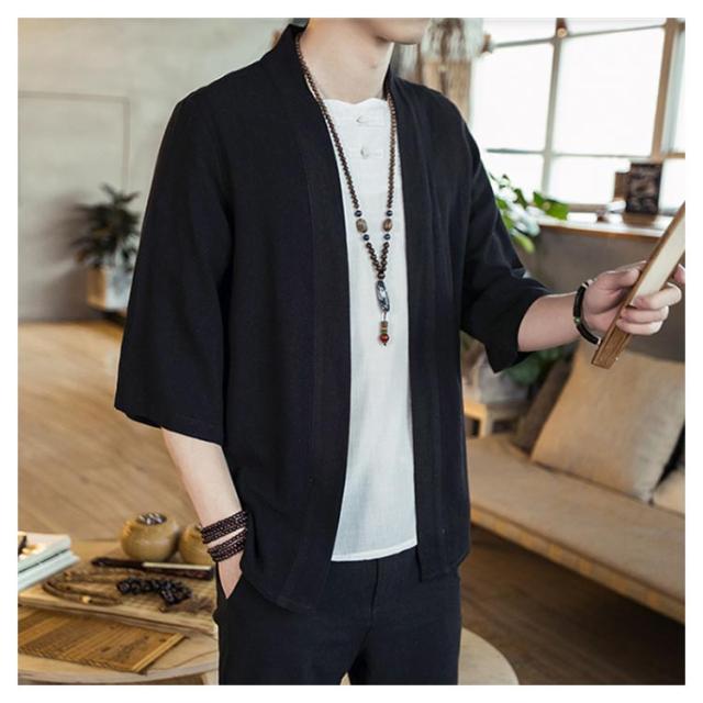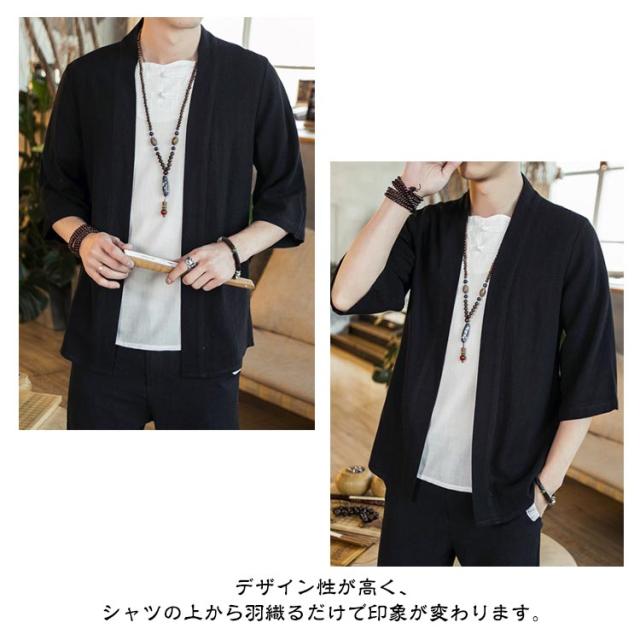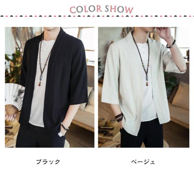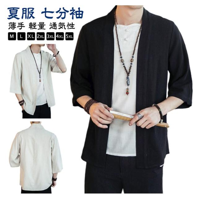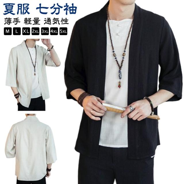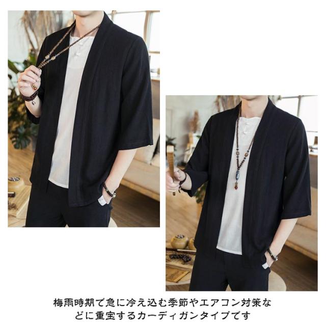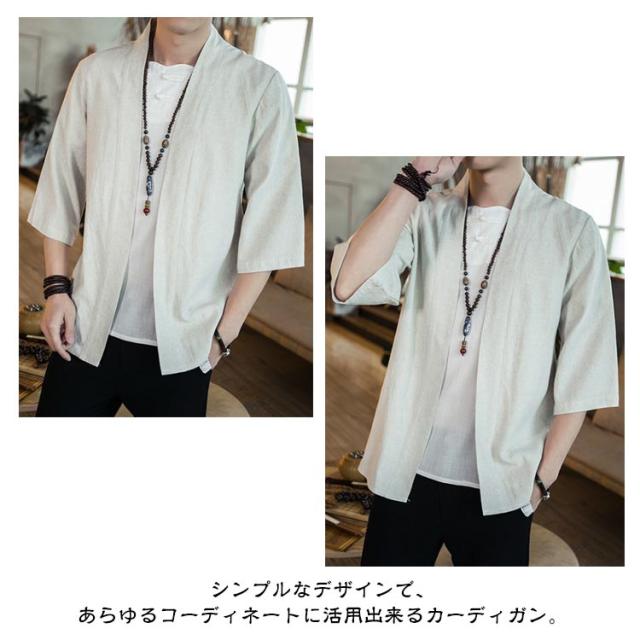 七分袖 サマーカーディガン メンズ 軽量 和式 カーディガン 無地 綿麻混 和風 カーディガン 薄手 お洒落 羽織り 夏服 通気性 大きいサイズ 体型カバー ゆったり カジュアル