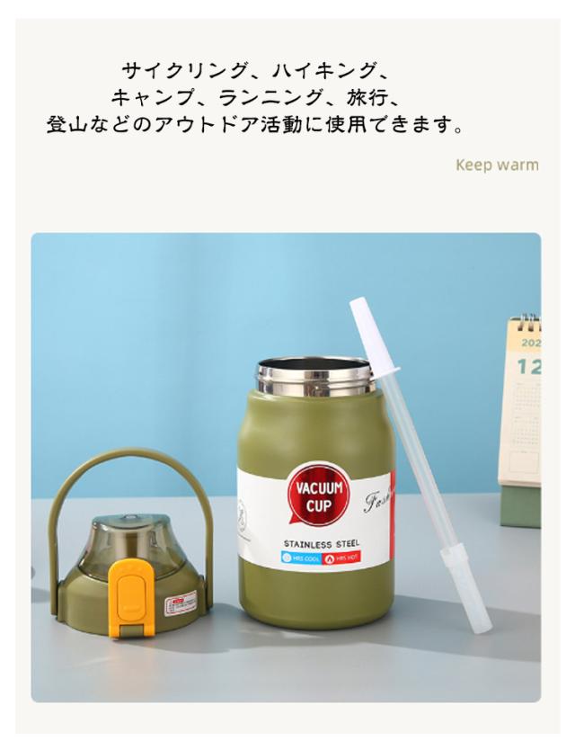 | スタイリッシュでクールなデザインは男女どちらにも使えてかっこいい! 真空二重構造で保冷・保温力がUP!飲み物の温度を長時間キープ。 1000ml・1200ml・1500ml・1800mlの大容量!広口タイプだから氷もラクラク入れられる♪ 新鮮な水を利用するためにストローやストレートで飲むことができます。 持ち手は付きので、カラビナやフックにかけて持ち運んだり、吊り下げ用途にも◎。 サイクリング、ハイキング、キャンプ、ランニング、旅行、登山などのアウトドア活動に使用できます。 このマグカップは、自宅、フィットネス、オフィス、学校などの日常生活でも使用できます。 | |