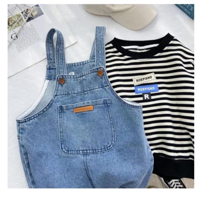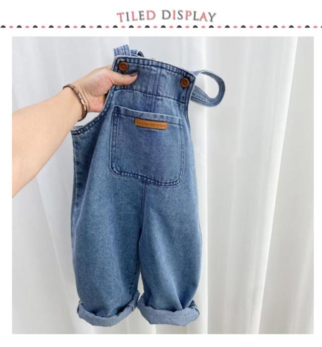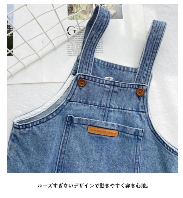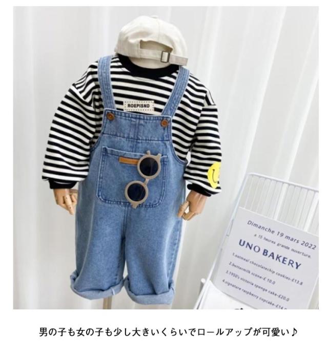 ポケット付き デニム キッス オーバーオール 調整可能 ジーンズ オールインワン 女の子 ロールアップ サロペット 80cm ベビー服 ベビー服 90cm 100cm 110cm 120cm 130cm 140cm