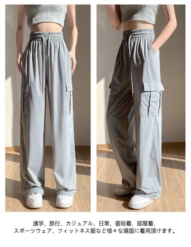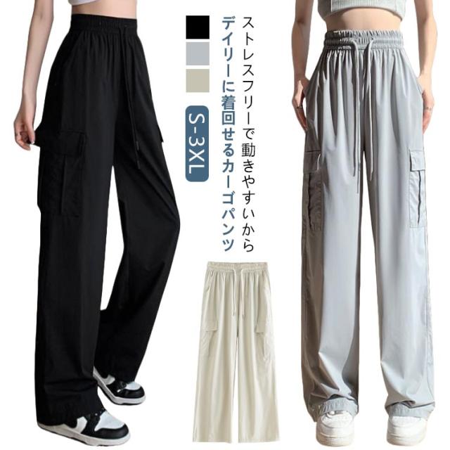 ジョガーパンツ テーパードパンツ 冷感 カーゴパンツ アイスシルクパンツ 涼感 カーゴパンツ 冷感素材 薄手 COOL 涼しい ワイドパンツ ひんやり ベイカーパンツ ボトムス おしゃれ 無地 動きやすい ヒップホップ 女性用 春 秋 ウエストゴム 作業着 ストリート