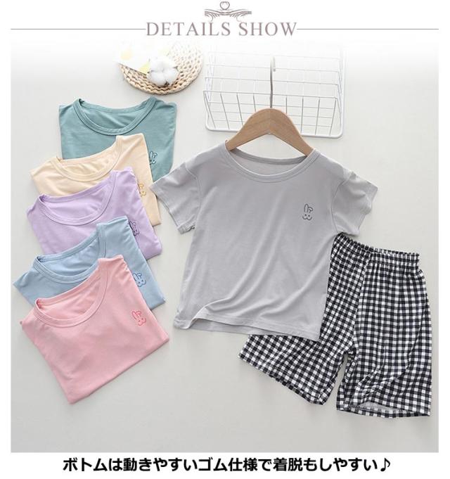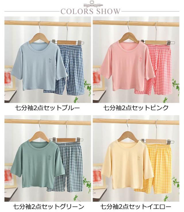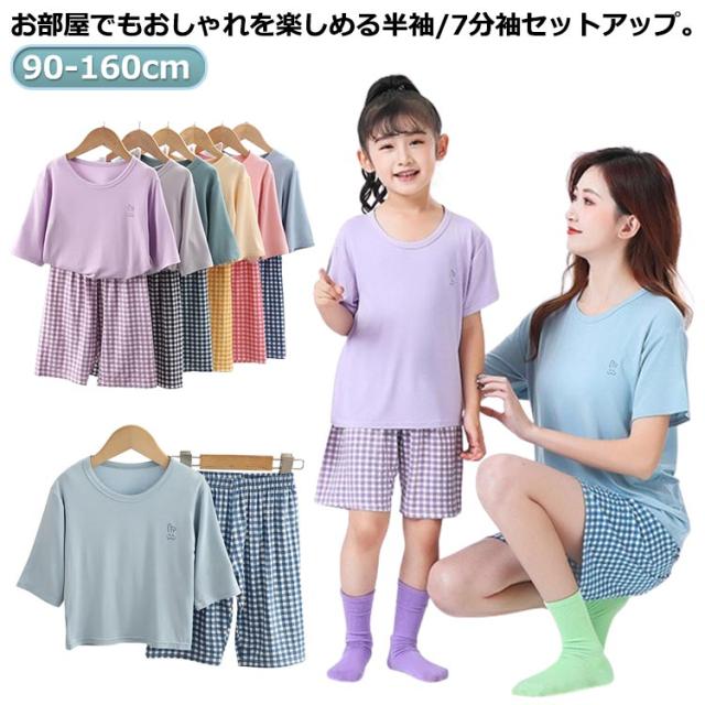 7分袖 上下セット 女の子 ストレッチ 150 女の子 春夏 130 160 120 110 パジャマ 涼しい 夏 140 薄手 夏 100 薄い パジャマ ボーイズ Tシャツ ガールズ 部屋着 ルームウェア ハープパンツ チェック柄 半袖 ジュニア ルームウェア 子供服