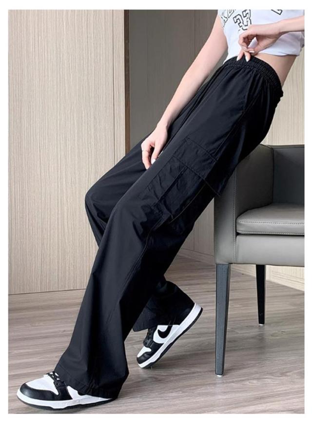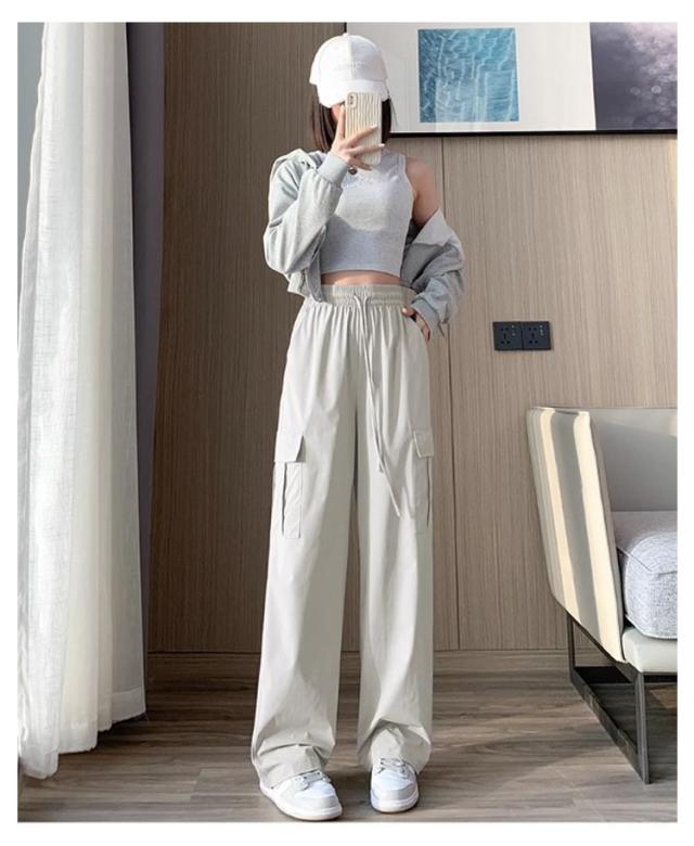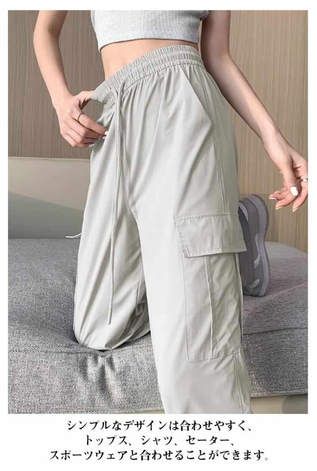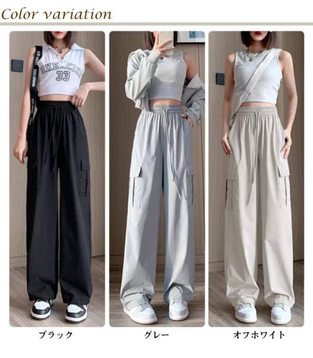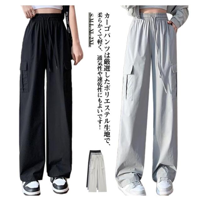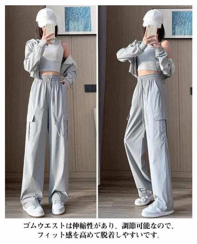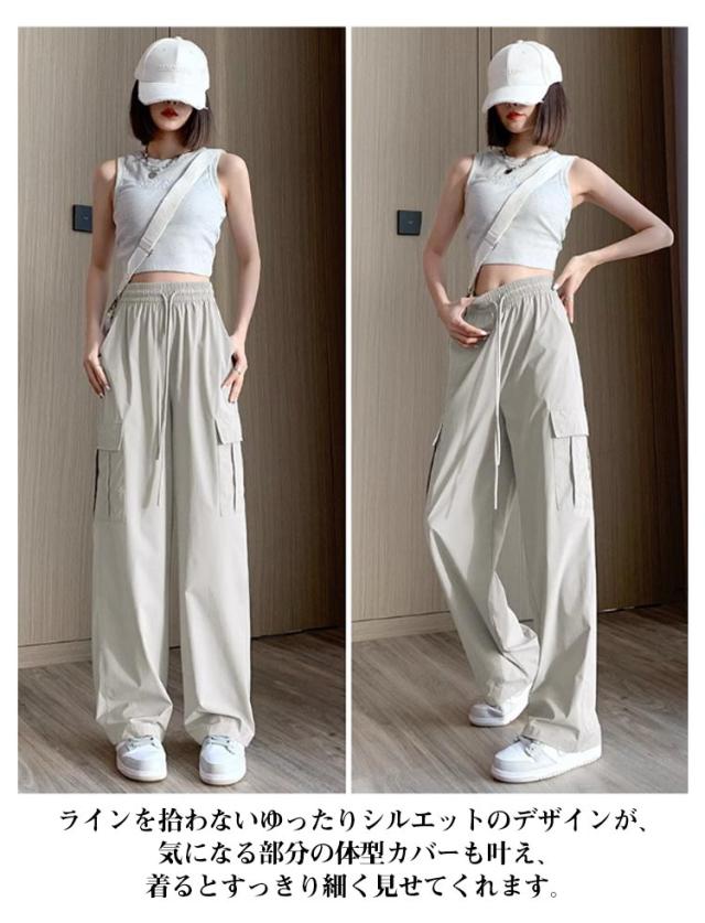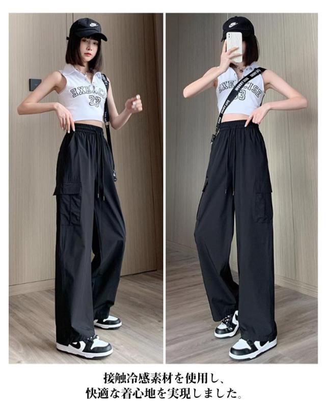 カーゴパンツ レディース アイスシルク ゆったり 楽ちん ワイドパンツ ストレートパンツ 春夏 パンツ 作業ズボン ロングパンツ ウエストゴム 美脚 uvカット 快適 ポケット ひんやり 涼しい 無地 カジュアル 接触冷感 体型カバー 20代 30代