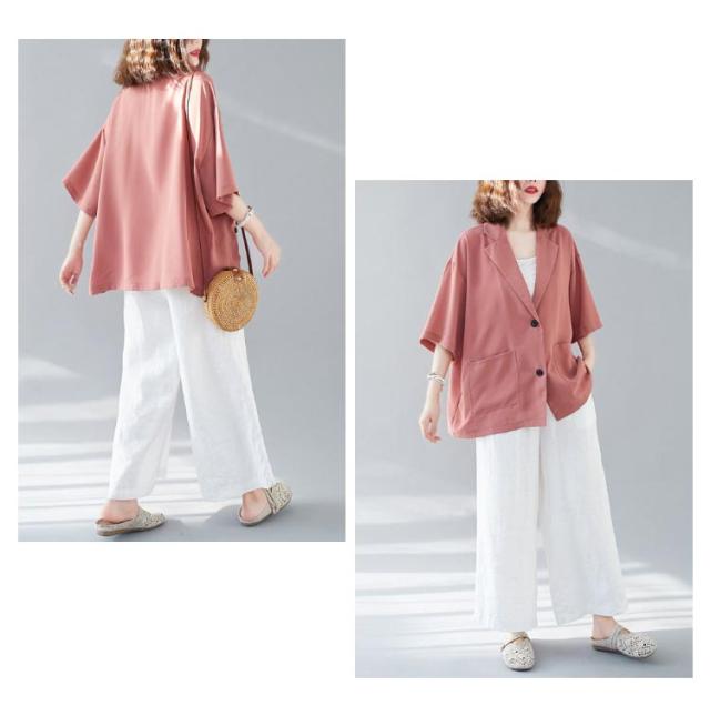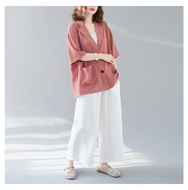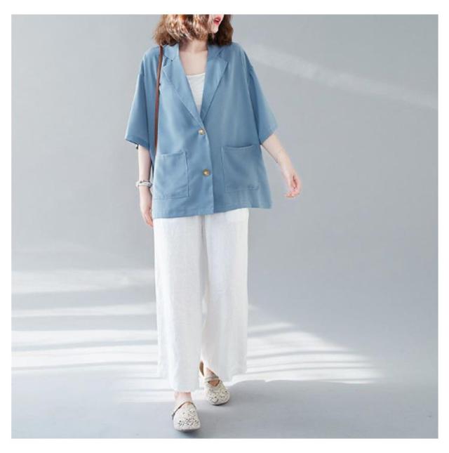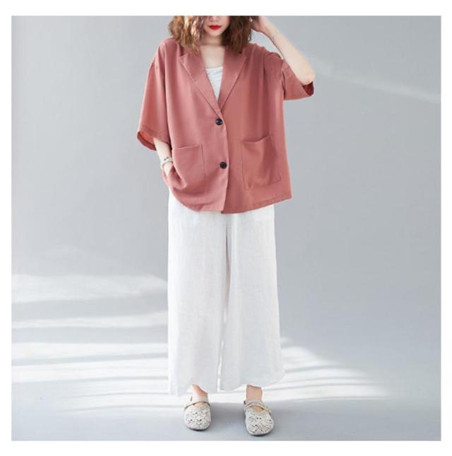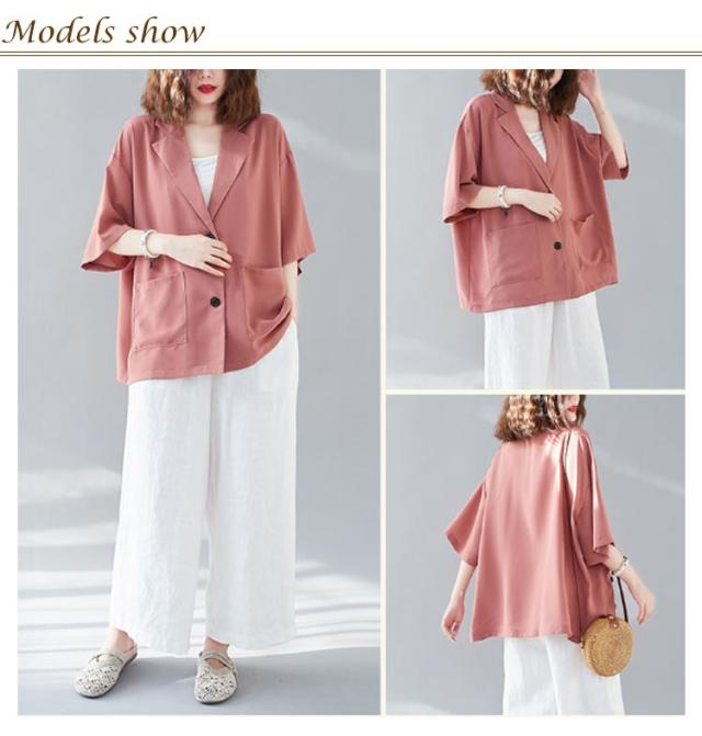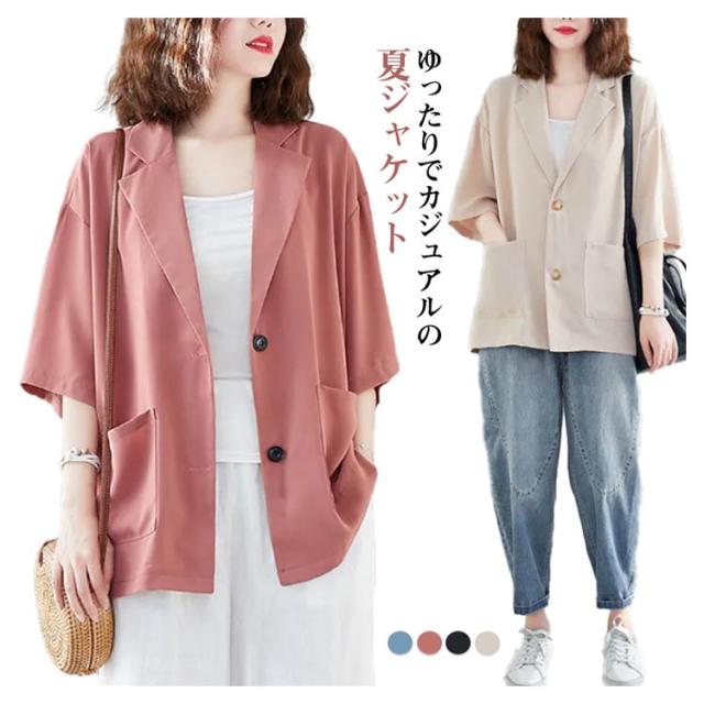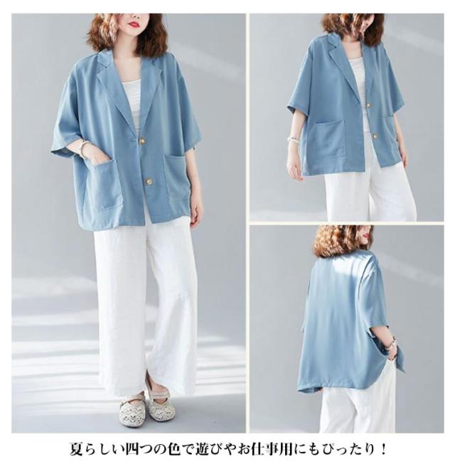 レディース 薄手 5分袖 ビジネス テーラードジャケット トップス 半袖 スーツ カジュアルスーツ ゆったり 夏 レディース 通勤 サマー 涼しい 軽量 春夏 フォーマル 入学式 卒業式