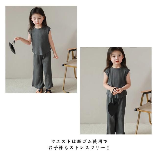 セットアップ ベビー服 ノースリーブ 夏 女の子 ロングパンツ トップス ガウチョパンツ tシャツ ボトムス ジュニア 赤ちゃん 女の子 長ズボン ベビー服 上下セット 入学 入園 誕生日 プレゼント 幼稚園