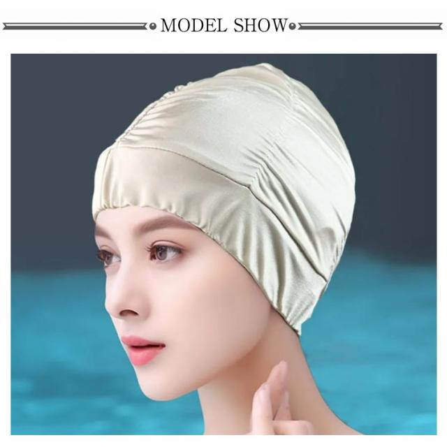 | 【折り目デザイン】豊富なレイヤーが頭の形を美しくします。 【伸縮性のあるデザイン】伸??縮性が高く、長い髪もキャップに入れることができます。 【速乾性】速乾性のある生地。環境に優しい素材。低い水泳抵抗 | |