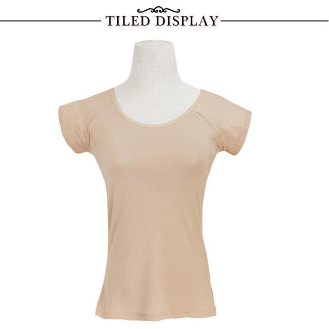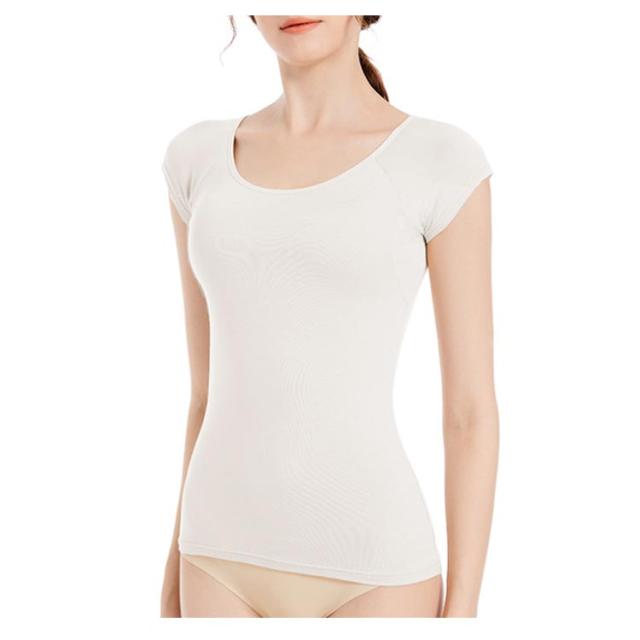 | 暑い季節のイヤ〜な汗、インナー1枚で解決します 中間に防水布を挟み込んだ3層構造の特大パッドがワキ汗をしっかりガードしてくれます ワキ高設計でワキ下にピタッとフィットし、汗をもらさず安心 | |