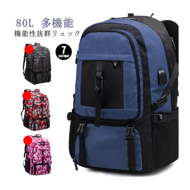 80L 撥水 リュック 大容量 80L ビジネスリュック USB充電ポート付き PC15.6インチ キャンプ用 A4収納 ラップトップバック リュックサック メンズ 防水 軽量 2way 多ポケット 通勤バッグ アウトドア 拡張機能 靴 収納 防災 バックパック 旅行 通気性 通学