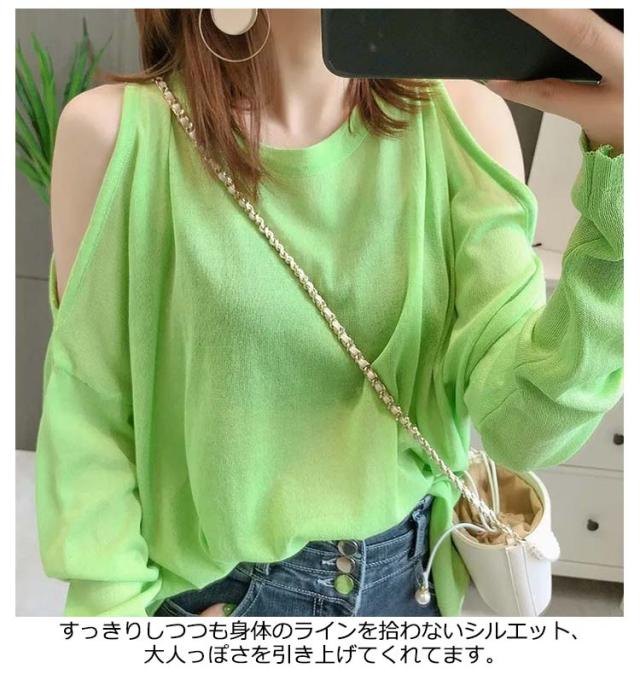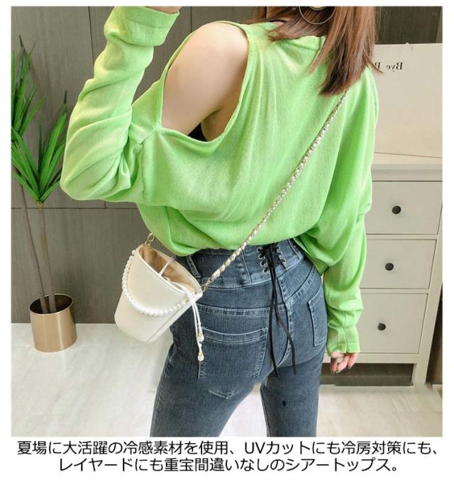 トップス 長袖 Tシャツ 肩出し 春夏 夏 接触冷感 レディース シアートップス カットソー ニットトップス 肩出しトップス 薄手 トップス カジュアル ストリート系 韓国