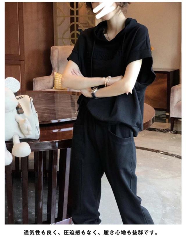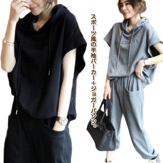 パンツ 春 レディース ジャージ ジョガーパンツ ゆったり 半袖パーカー セットアップ 夏 秋 フード付き スウェット 部屋着 2点セット トップス 着痩せ 大きいサイズ ルームウェア スウェット トレーニング スポーツウェア カジュアル リラックス おしゃれ