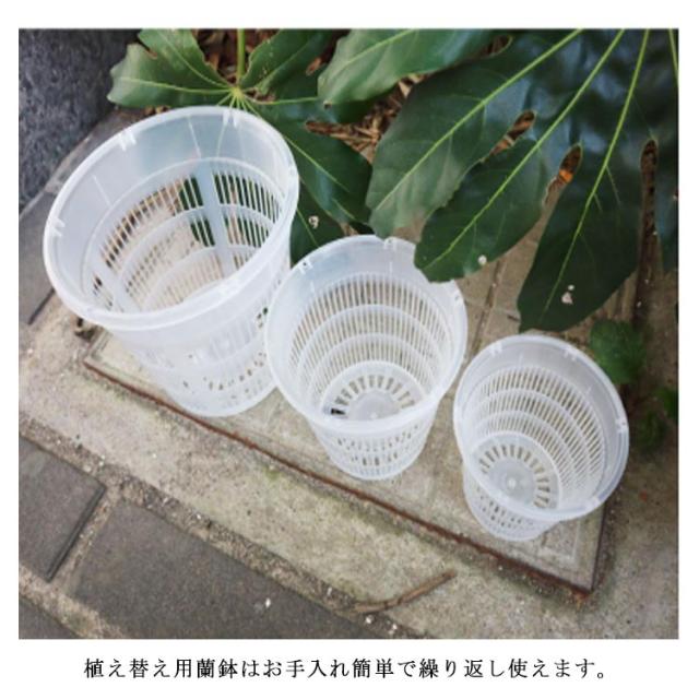 | 【胡蝶蘭専用植木鉢 5鉢セット】 【水がよく抜ける多穴型】 育苗ポットは透明で、いつでも植物の根の成長や土の水分を観察できます。 厚くて丈夫で、落としても簡単に壊れたり変形したりしません。植え替え用蘭鉢はお手入れ簡単で繰り返し使えます。 側面の多孔性の穴に加え鉢底も複数の穴を標準としているので、より一層水はけ、通気性に優れています。 胡蝶蘭だけでなく、多肉植物、果樹、植木栽培にもお勧め! | |
