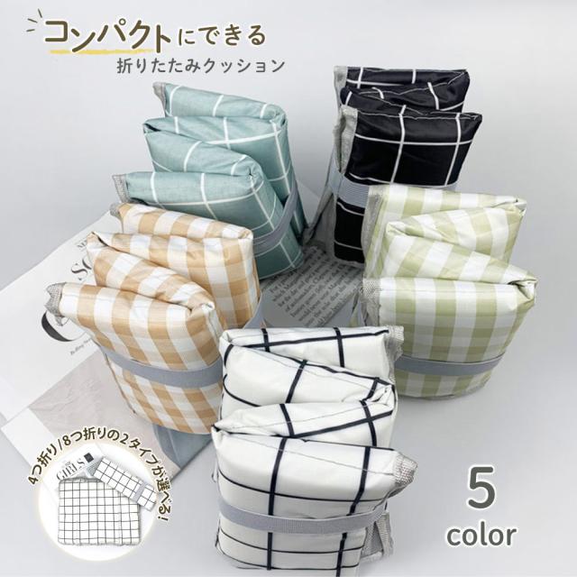 折りたたみクッション 携帯クッション 4つ折り 8つ折り レジャーマット 座布団 アウトドア用品 オックスフォード チェック柄