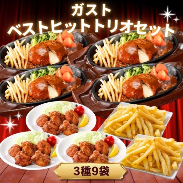 冷凍食品 惣菜 ハンバーグ から揚げ/ガスト ベストヒットトリオセット(3種9袋)/冷凍ハンバーグ デミグラスソース ポテト 洋食 洋風惣菜 お惣菜 おかず 弁当 湯煎 湯せん 温めるだけ 一人暮らし 簡単調理