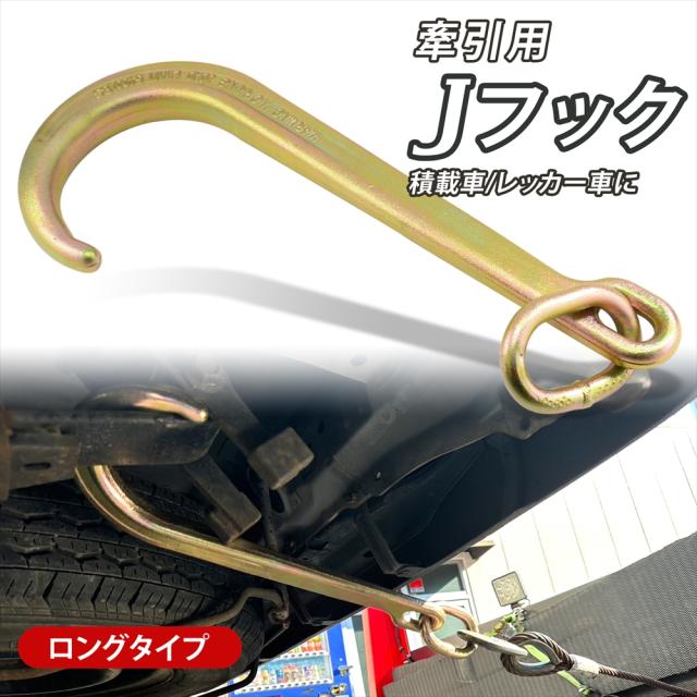 J型フック 牽引用 レッカー車 車両積載車 牽引フック レッカー用品 リング付 36cm 耐荷重 2450kg 牽引 ウインチ セルフローダー ラッシングベルト レッカー作業 引っ掛けフック 車両運搬 車両固定 積車 簡単 丈夫 【ロングタイプ】 【宅配便のみ】