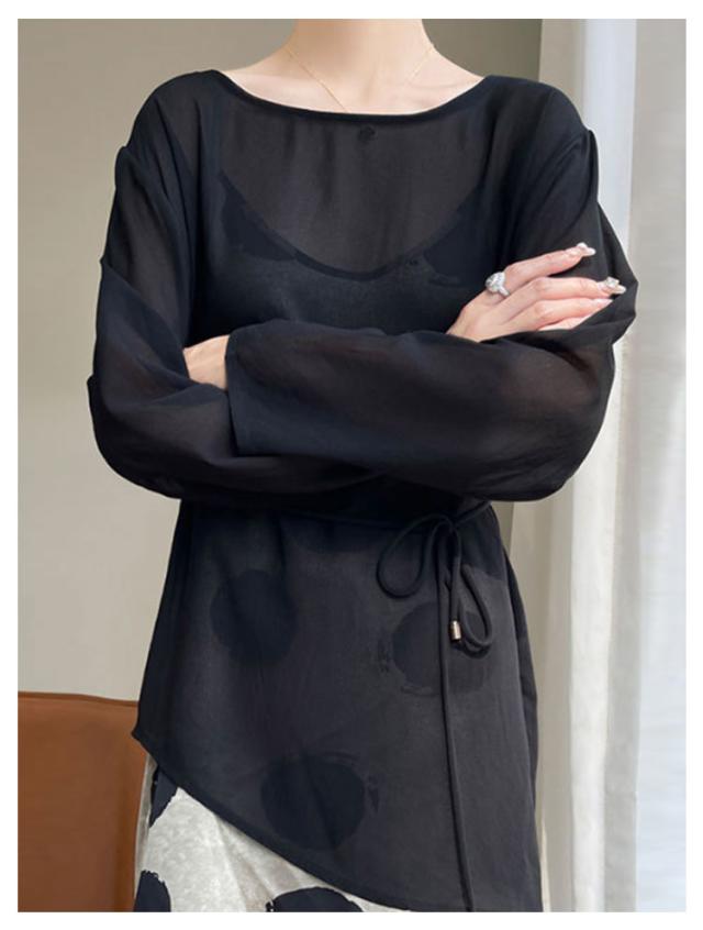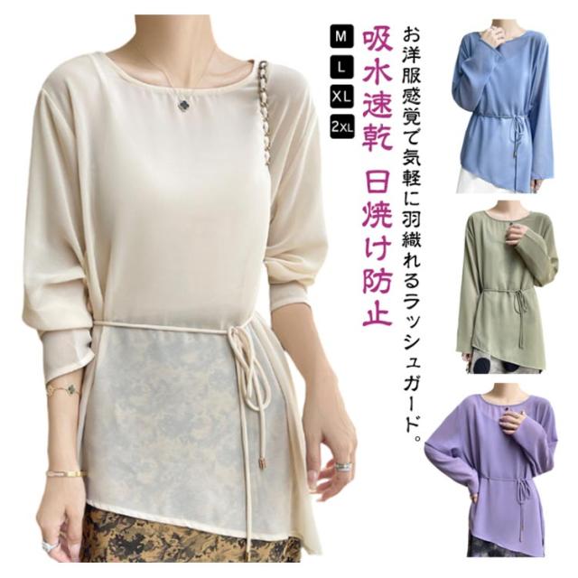 アクティブウェア ラッシュガード ラッシュガード エレガント プルオーバー 海 水着 レディース 日焼け防止 長袖 ラッシュチュニック ベルト付き チュニック キレイめ お洒落 レイヤード風 体型カバー 通勤 普段着