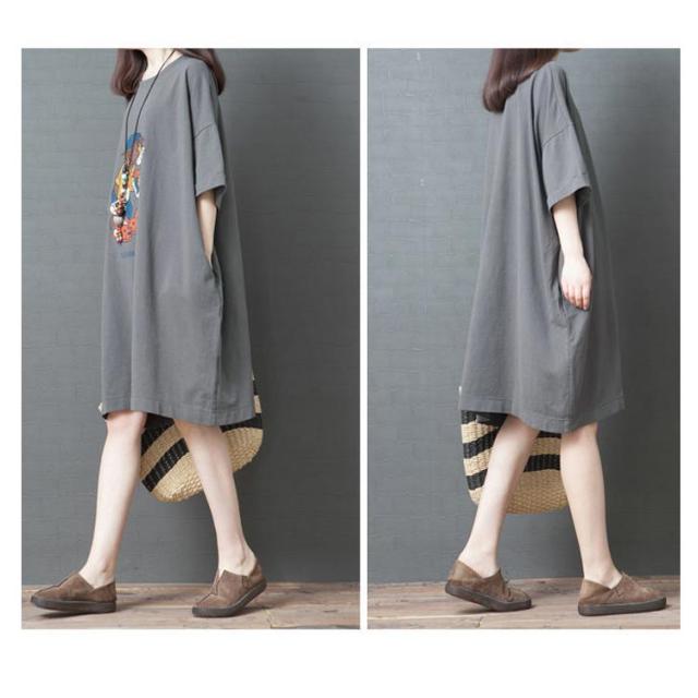 | M-3XL!リラックス感のあるゆったりとしたシルエットのTシャツワンピース。 肌触り感優しい綿混紡を採用。 ゆったりとしたシルエットで快適な着心地。 両サイドに便利なポケットが付いてあります。 デイリーに大活躍のアイテムです。 | |
