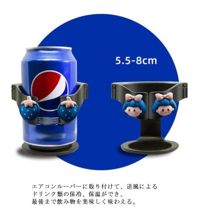 | 缶ジュースやカップ飲料を置いておくのに便利♪ エアコン吹き出し口に取り付けて使用する、車内用ドリンクホルダーです。 ペットボトルや缶、コンビニコーヒーカップなどをほどよくフィットし、しっかりホールドできるフラップ設計がワンポイント。 エアコンルーバーに取り付けて、送風によるドリンク類の保冷、保温ができ、最後まで飲み物を美味しく味わえる。 コロンとした高級感漂う美しいフォルムおしゃれ。 | |