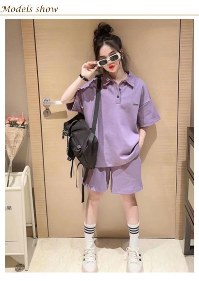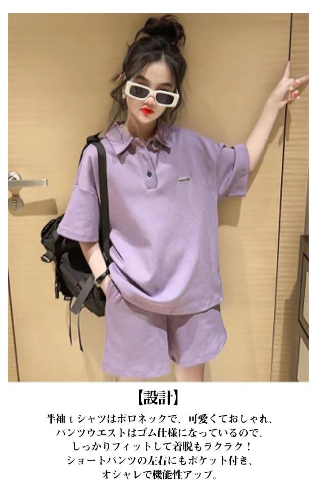 半袖 女の子 カジュアル 韓国子供服 セットアップ 運動着 2点セット スポーツウェア スウェットシャツ ショートパンツ キッズ 夏服 セットアップ ポロネック 普段着 ジュニア服 ゆったり 体操服 ダンス