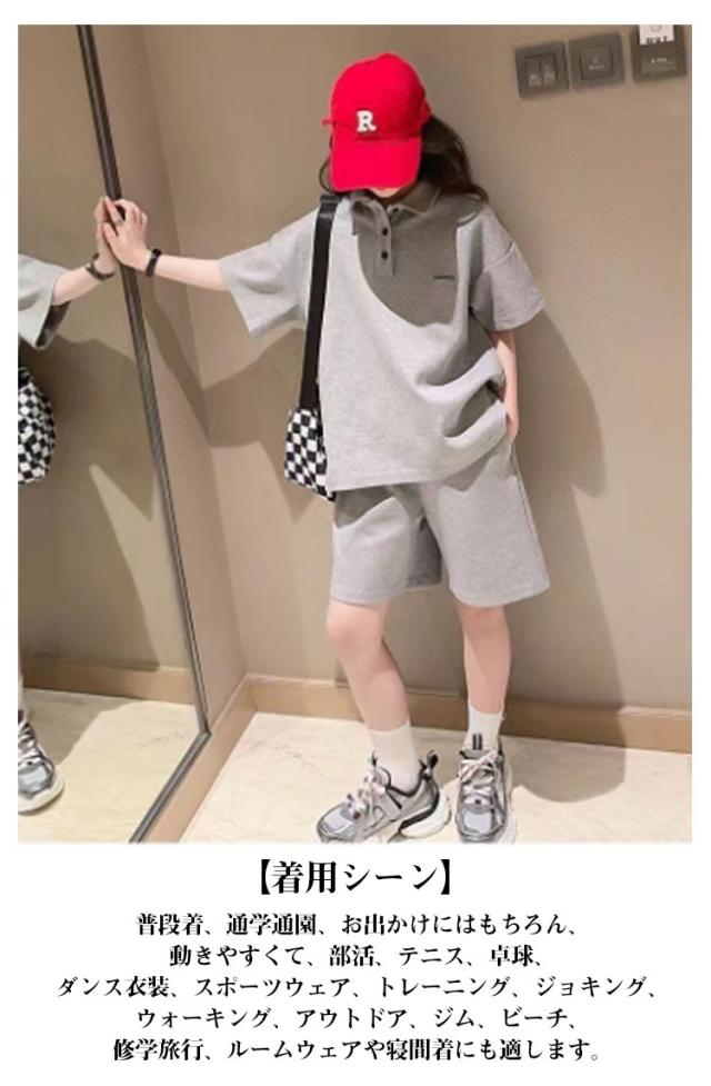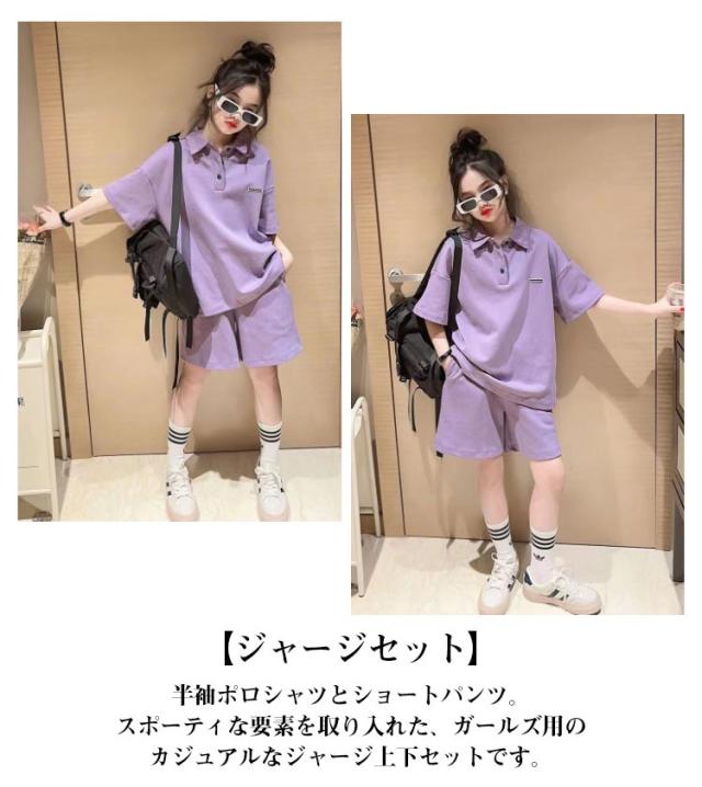 | 【ジャージセット】 半袖ポロシャツとショートパンツ。スポーティな要素を取り入れた、ガールズ用のカジュアルなジャージ上下セットです。 動きやすくて、スポーツ用としてはもちろん、普段着や部屋着、アウトドアにもおすすめ! 【設計】 半袖tシャツはポロネックで、可愛くておしゃれ、パンツウエストはゴム仕様になっているので、しっかりフィットして着脱もラクラク!ショートパンツの左右にもポケット付き、オシャレで機能性アップ。 【着回し抜群】 セットはもちろん、単品としても合わせやすい優秀なアイテム! いろんなコーデを楽しめます。 お手持ちの服と合わせるとよりコーデの幅が広がります。 【着用シーン】 普段着、通学通園、お出かけにはもちろん、動きやすくて、部活、テニス、卓球、ダンス衣装、スポーツウェア、トレーニング、ジョキング、ウォーキング、アウトドア、ジム、ビーチ、修学旅行、ルームウェアや寝間着にも適します。 | |