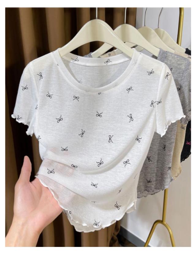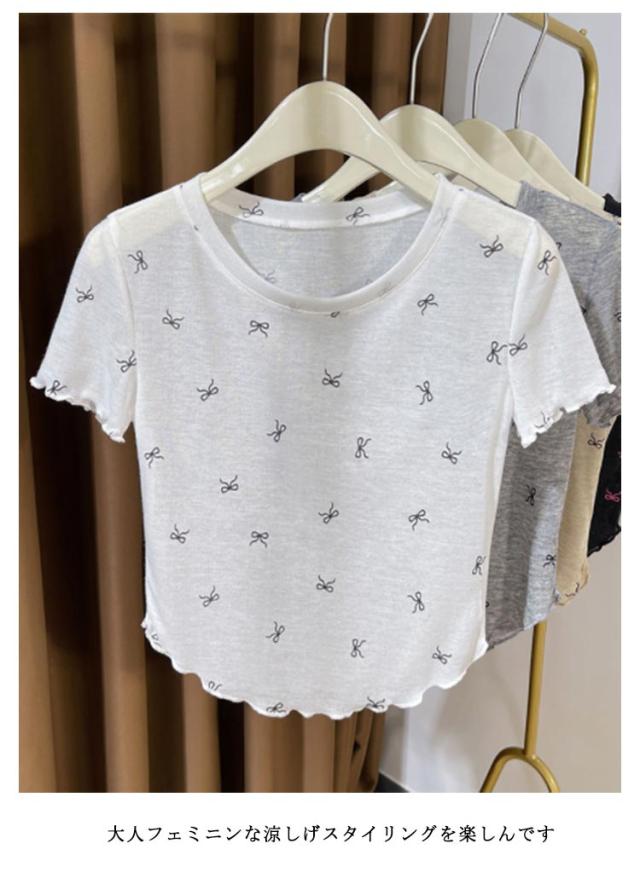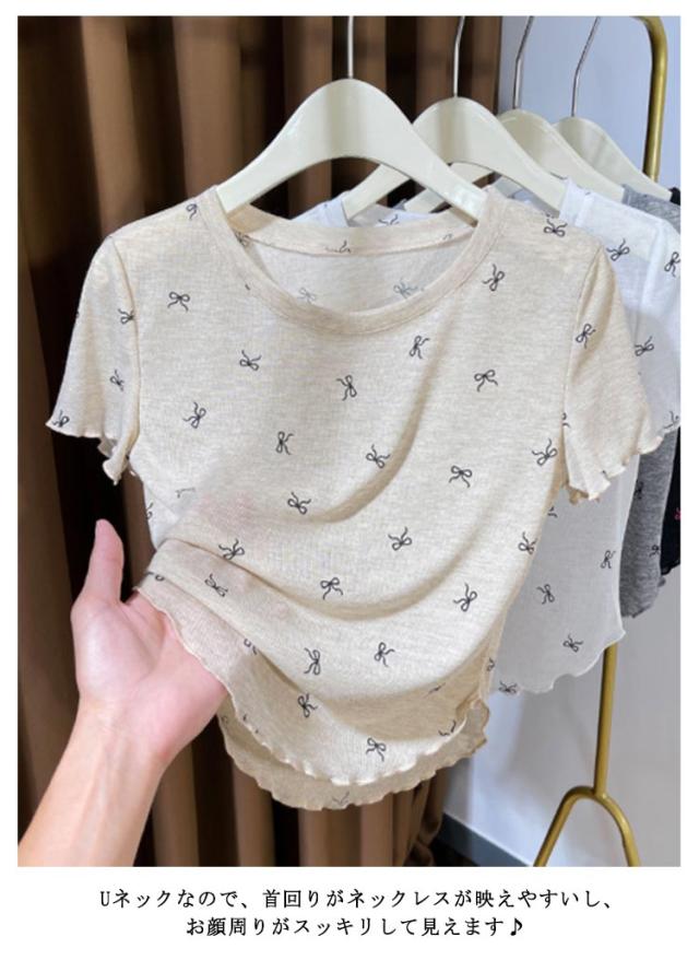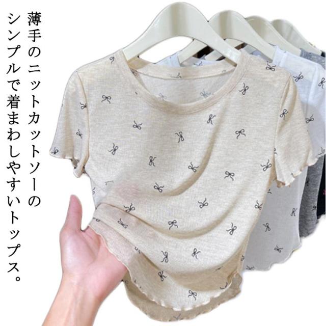 tシャツ レディース 半袖 リボン トップス 春夏 夏 カットソー 冷感 ニットソー ゆったり 吸汗速乾 リブ Uネック 薄手 おしゃれ 無地 サマーニット 夏服 春服 オフィス カジュアル 通勤 事務服 送料無料