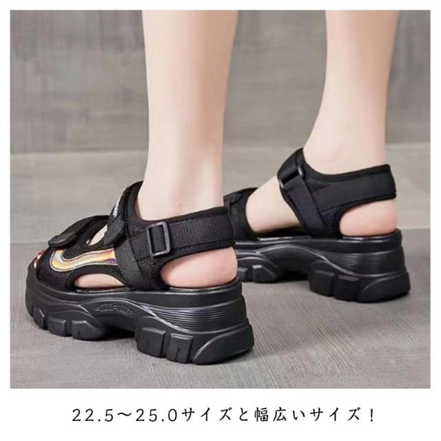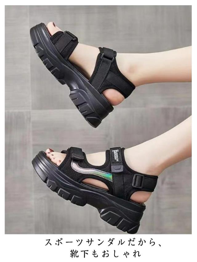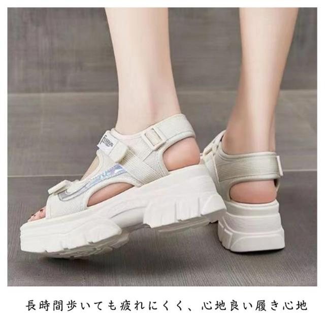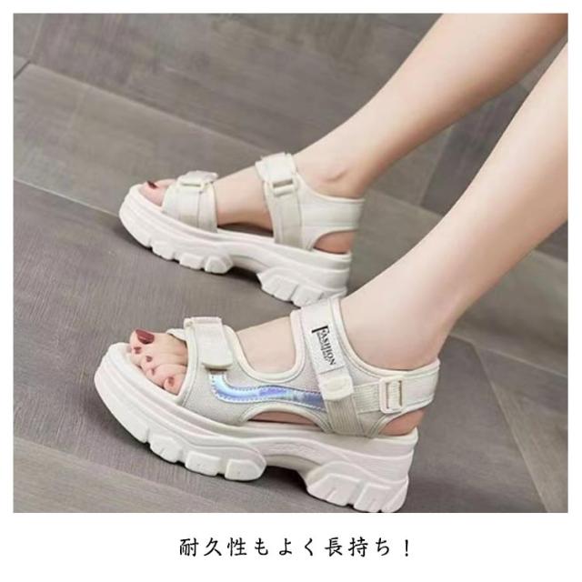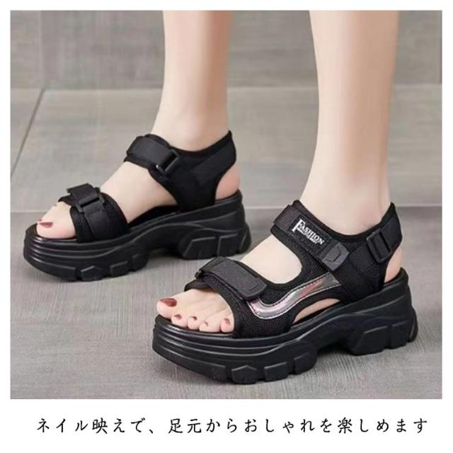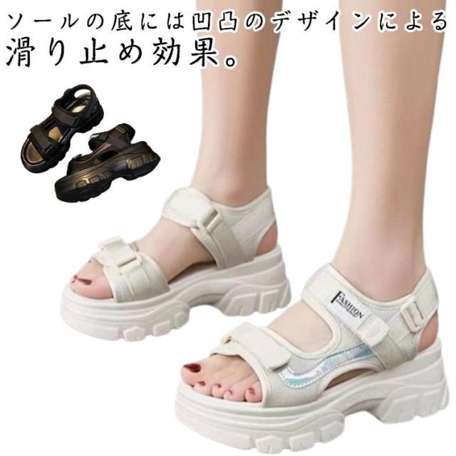 6cmヒール レディース サンダル おしゃれ アウトドア 歩きやすい サンダル スポーツサンダル フラット マジックテープ 厚底 大きいサイズ 夏 行楽 底靴 靴 美脚効果 イベント スポサン