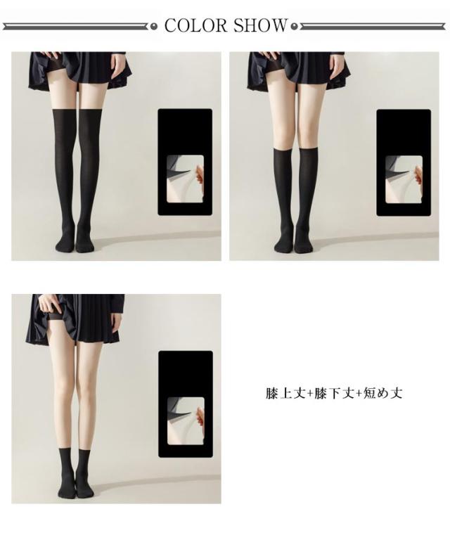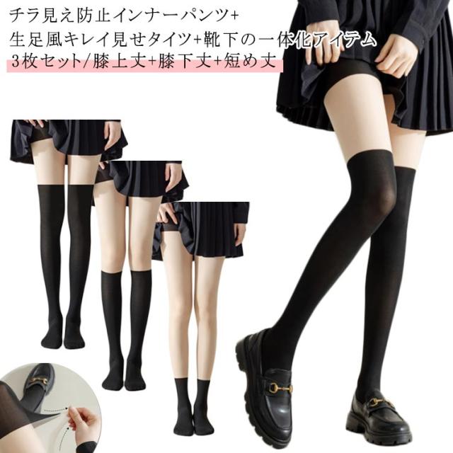 | 3枚セット/膝上丈+膝下丈+短め丈 チラ見え防止インナーパンツ+生足風キレイ見せタイツ+靴下の一体化アイテム | |