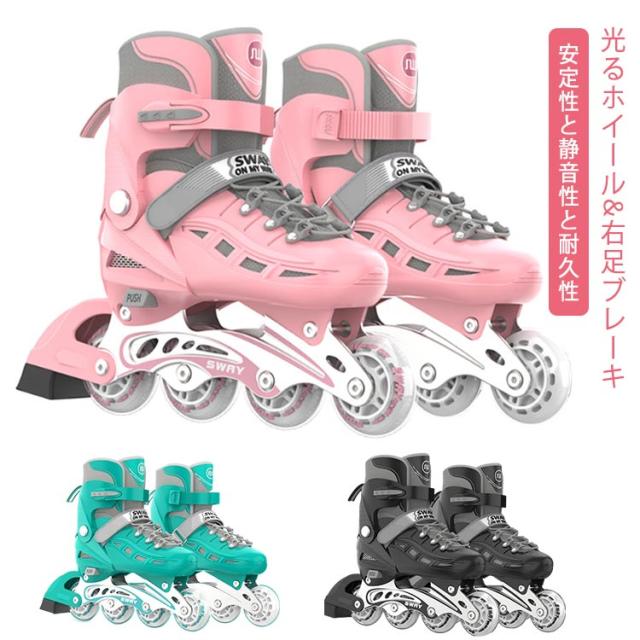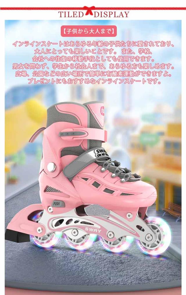 インラインスケート インラインスケート 大人 子供用 ジュニア サイズ調整可能 ローラーブレード インラインシューズ 耐久 通気性 安全 ローラースケート 全ウィールが光る 女の子 男の子 初心者向け 誕生日 クリスマス プレゼント 送料無料