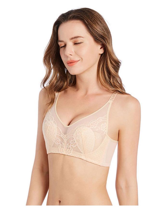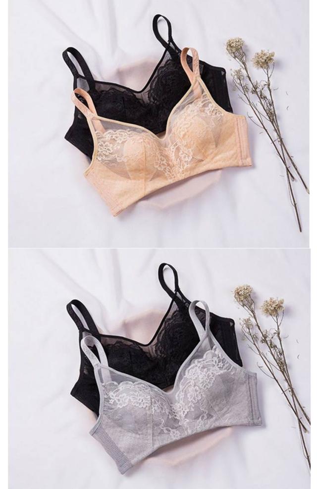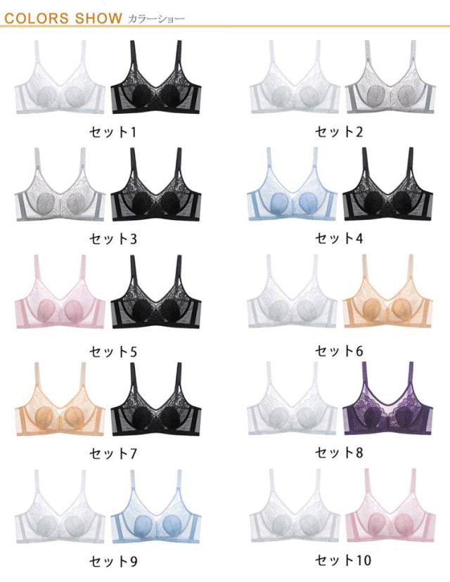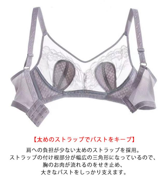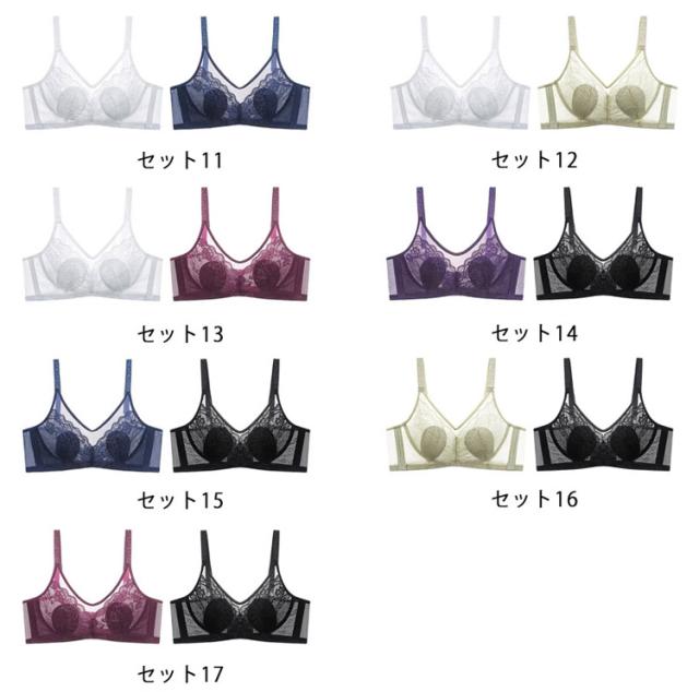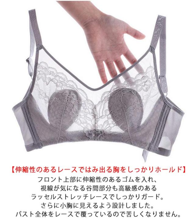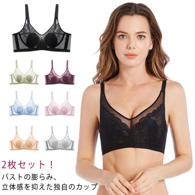 2枚セット!胸が小さく見えるブラ 胸を小さく見せるブラジャー レディース 総レース ブラジャー 花柄レース ノンワイヤーブラジャー 薄手 着痩せブラ 育乳ブラジャー 脇高ブラ 送料無料