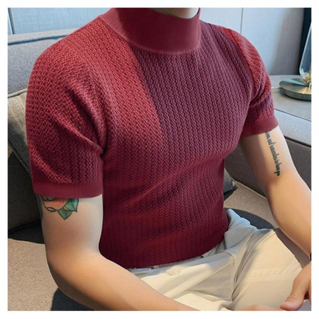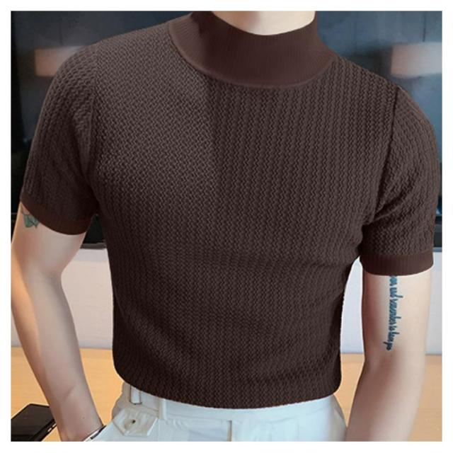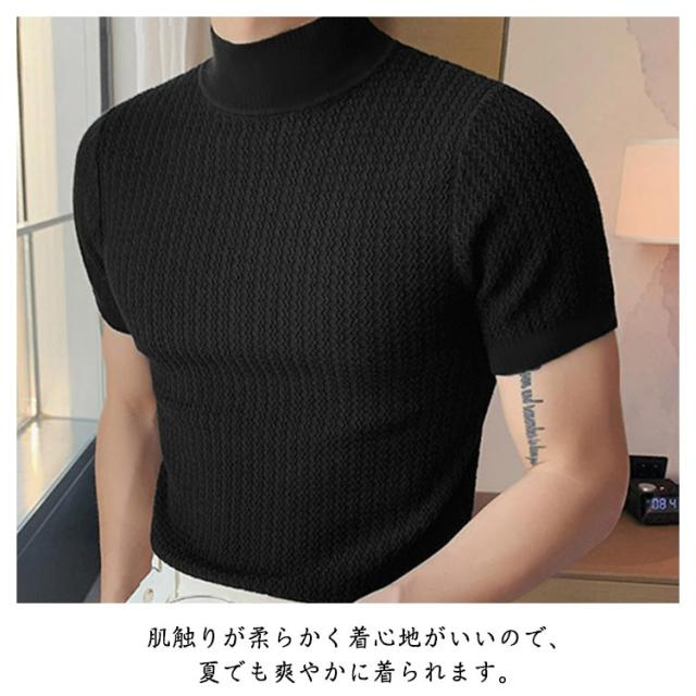 ハイネック カットソー メンズ 半袖 Tシャツ モックネック 無地tシャツ 夏 ハイネックtシャツ 細身 トップス 白 黒 サマーニット タイト 夏服 ダイエット ゴルフウエア ランニング ジム 送料無料