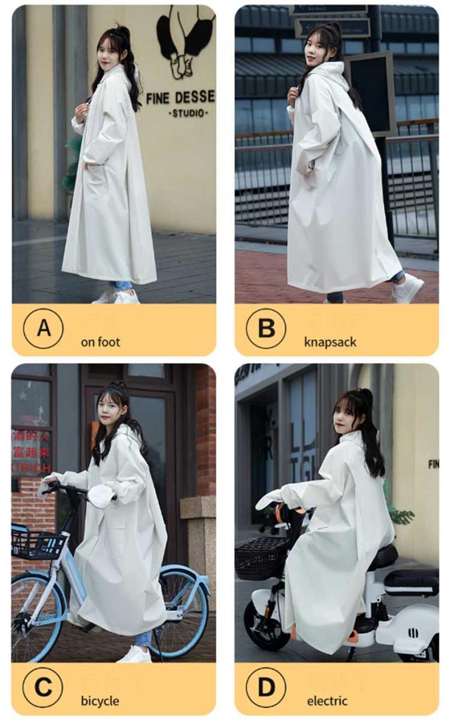 | どんな天気でも対応できる、楽に出かけるレインコート。日常での使いやすさを重視し、街歩きや自転車運転で便利な機能が満載! 通気性の設計が施されており、真夏や梅雨のような長時間の着用でもベタつきを感じることなく快適に過ごせます。リュックを背負ったままでも自転車を乗ることができます。 フェイスカバーは取り外し可能で、ボタン付きなので必要に応じて簡単に取り付けや取り外しができます。大型サイズで、自転車やリュックとの相性も良いため、男女兼用で利用できます。 ロング丈のデザインにより、全身をしっかりと覆い、足元まで雨から守ります。通勤通学や自転車運転、雨中作業などに最適です。特に梅雨や台風の時期には非常に役立ちます。 取り外し可能な透明バイザーが付属しています。飛沫防止や風雨対策に役立ちながらも、クリアな視界を確保することができます。風や斜め雨からも顔が濡れにくくなり、フードもサイズ調節可能です。視界を確保し、安全な運転が可能です。 通気性、自転車やリュックへの対応性、取り外し可能なフェイスカバーや透明バイザーの付属。梅雨や台風時などの悪天候下での使用において、快適さと安全性を提供します。 | |