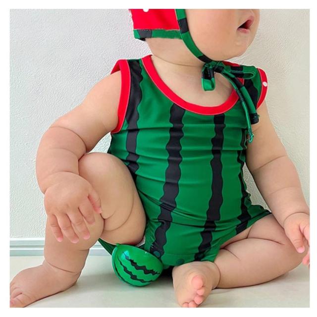 | 可愛いフルーツ柄のベビー水着。 キャップ付きでお子様を日焼けから守ることもできます。 プールや海で目立ちそうな柄アイテムで子供らしさ満載。 小さなお子さんの肌への負担が心配なお母さんんもこれなら安心ですね。 自宅での水遊びなどで初めての水遊びを安心して楽しむことができますね。 | |