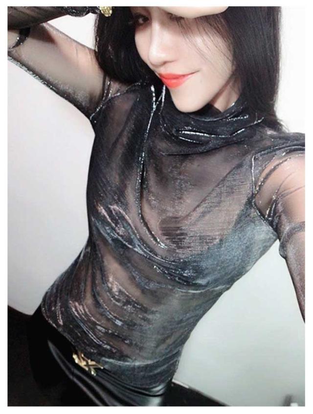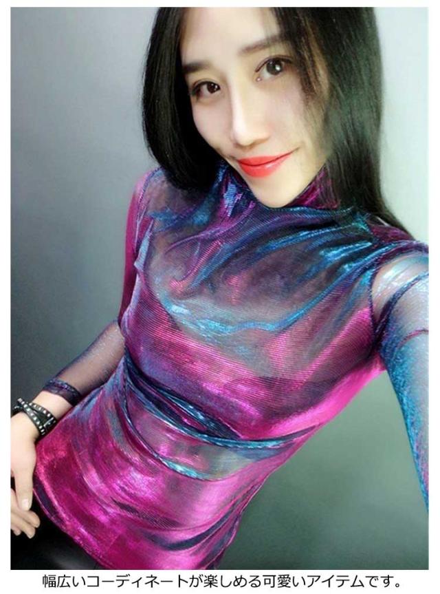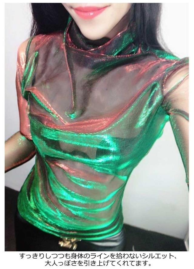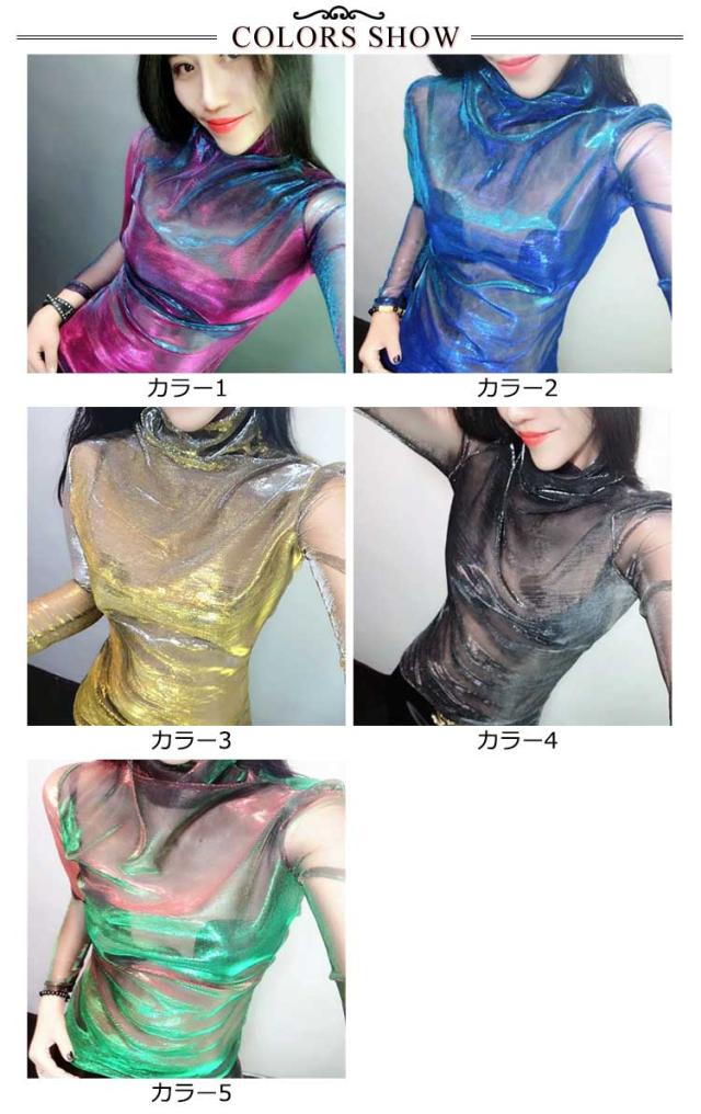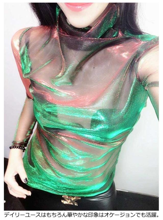 長袖 オーロラシアートップス 光沢 レディース きらきら シアー ハイネック オーロラシアートップス 透け感 韓国 ダンス衣装 ヒップホップ カットソー ストリート フェミニン ガーリー ジャズダンス 派手 肌見せ グラデーション S M L XL