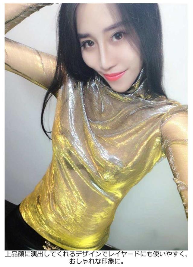 | 女性らしさが引き立つオーロラ光沢デザインが目を惹く1着です。 ハイネックで華やかさのあるシアートップス 上品顔に演出してくれるデザインでレイヤードにも使いやすく、おしゃれな印象に。 すっきりしつつも身体のラインを拾わないシルエット、大人っぽさを引き上げてくれてます。 デイリーユースはもちろん華やかな印象はオケージョンでも活躍。 女性らしいアイテムに合わせれば上品な着こなしが叶います。 幅広いコーディネートが楽しめる可愛いアイテムです。 ダンス衣装にもおすすめです。 | |