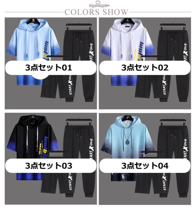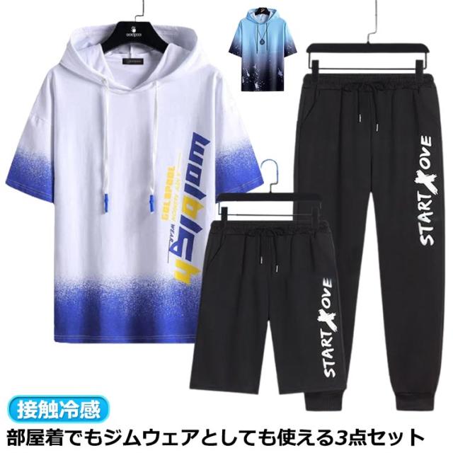 セットアップ 大きいサイズ 送料無料 パーカー ロングパンツ ハーフパンツ 夏 半袖 スポーツウエア ハープパンツ メンズ 半袖 フード付き 運動着 半袖パーカ 大きいサイズ 春服 夏 夏服 夏物