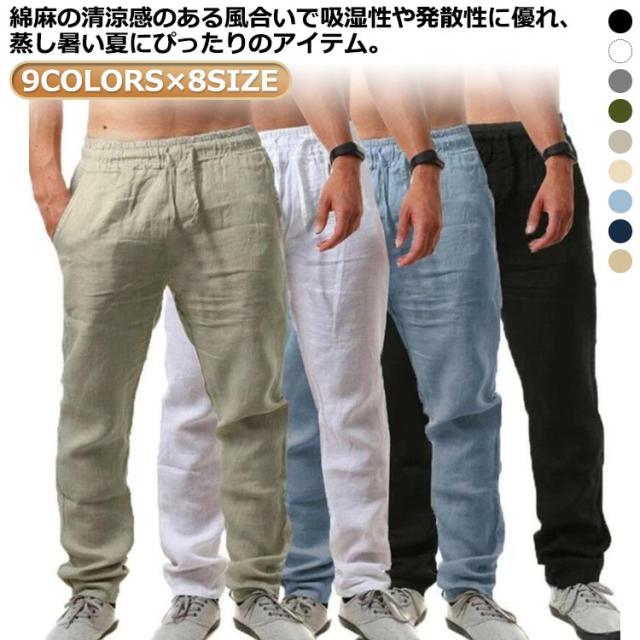 カジュアルパンツ メンズ リネンパンツ 麻パンツ メンズ チノパン チノパンツ メンズチノパンツ 吸汗速乾 シンプル 麻混 ワイドパンツ ロングパンツ 大きサイズ メンズ 無地 涼しい ゆったり 薄手 リネンコットン イージーパンツ 夏 涼しい リラックスパンツ