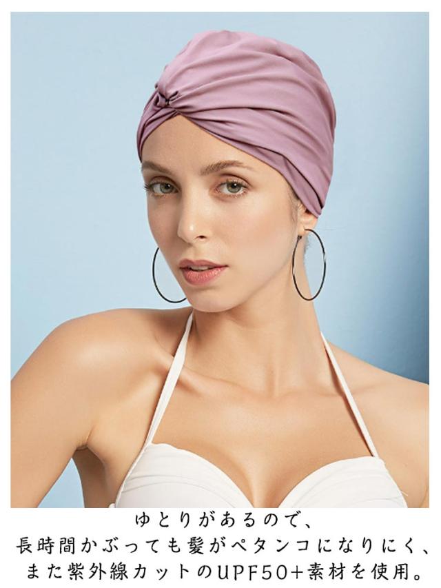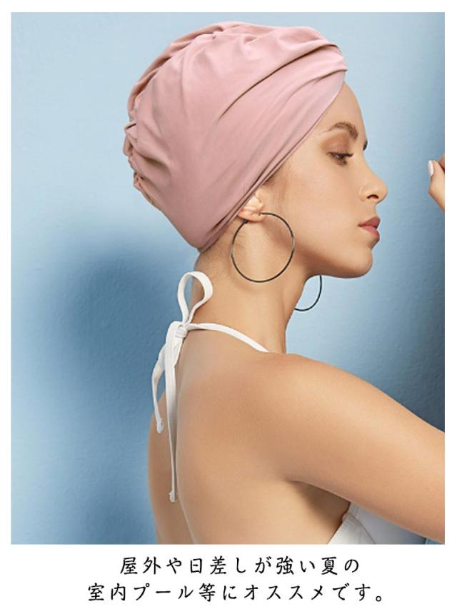 | ゆったりキャップ:柔らかい素材を使用しているため、締め付け感を感じにくくなっております。 伸縮性が高く、長い髪の毛も収納しやすい作りとなっております。 おしゃれ設計:トップ部分はリボンを結んだような可愛いデザイン。 ゆとりがあるので、長時間かぶっても髪がペタンコになりにく、また紫外線カットのUPF50+素材を使用。 屋外や日差しが強い夏の室内プール等にオススメです。 | |