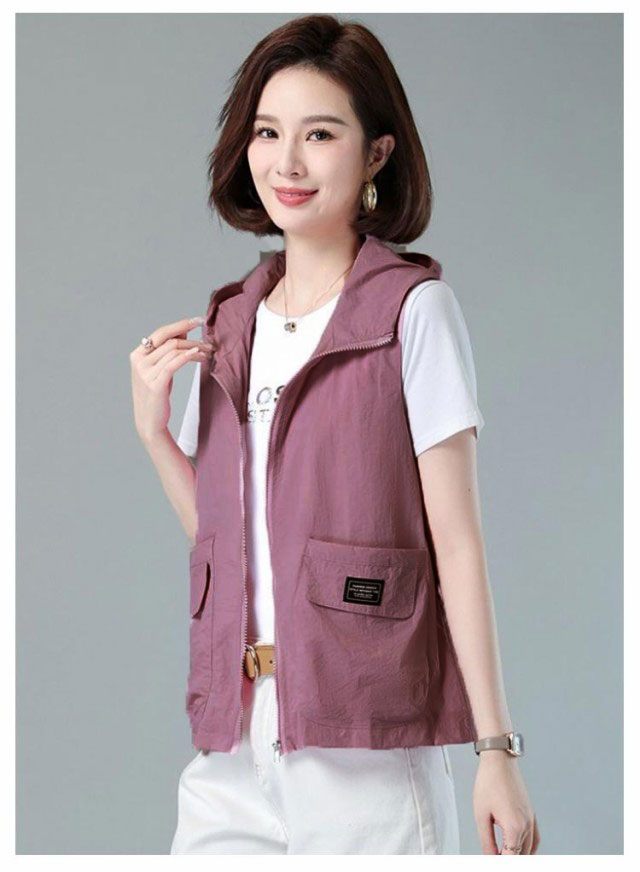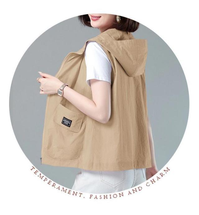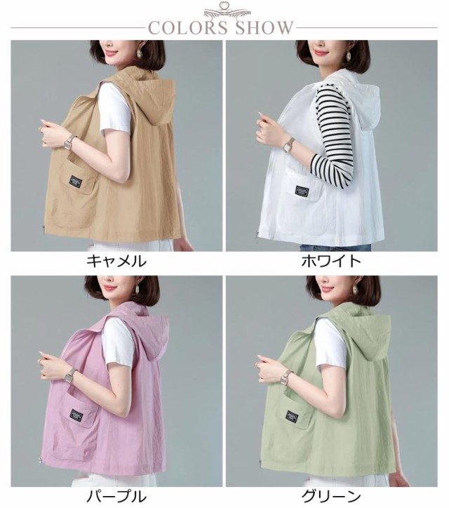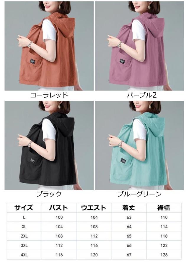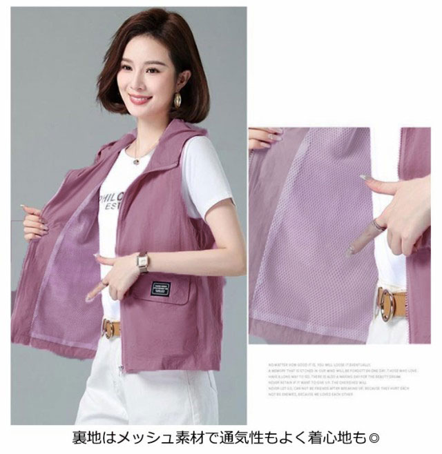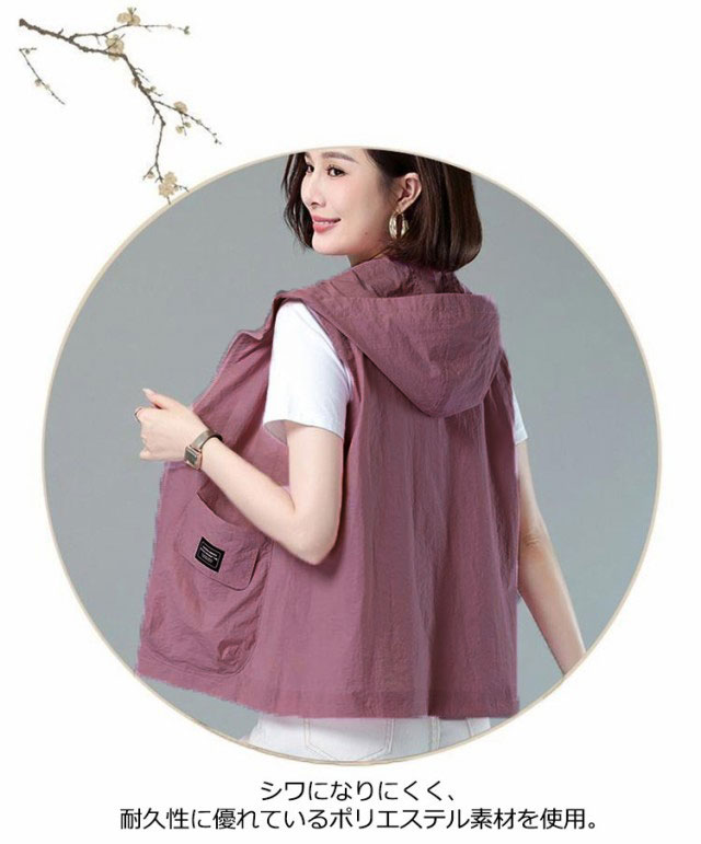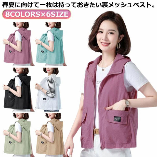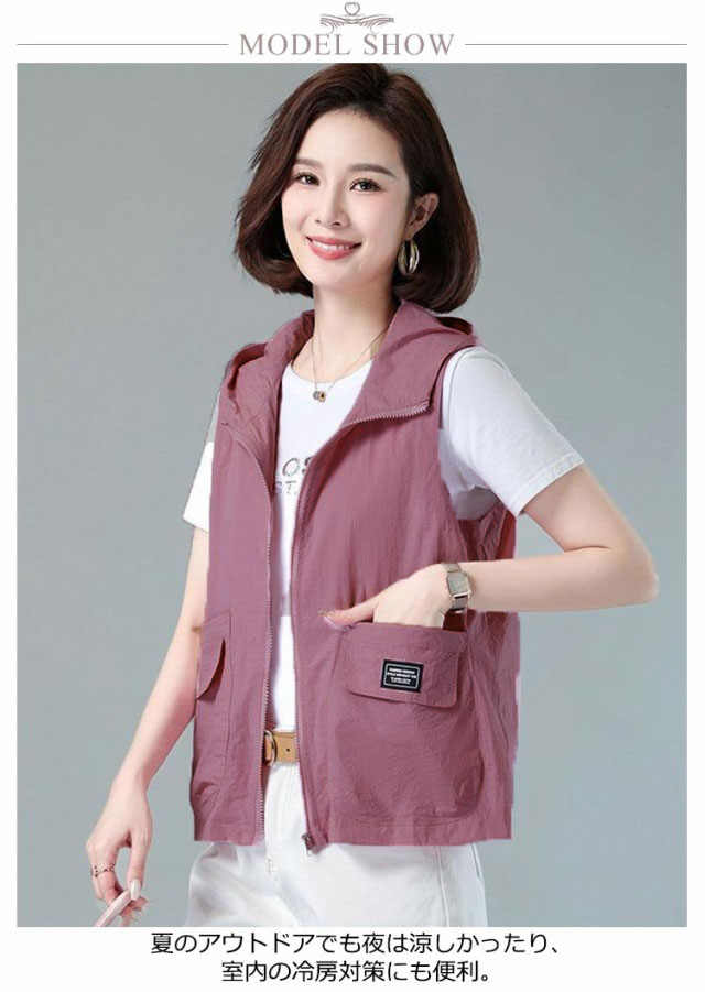 ジップアップパーカー レディース 春夏 ジャケット カジュアル ポケット付き フード付き 前開きベスト レディース 裏メッシュ ノースリーブ ベスト 大人 サマージャケット 羽織 ライトアウター 日焼け防止 アウトドア 無地