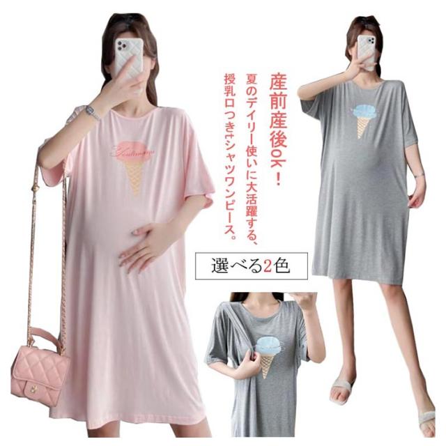 授乳服 マタニティ 半袖 授乳ワンピース 授乳口付き マタニティウェア Tシャツワンピース 春 夏 秋 産前 産後 膝丈 ロングワンピース ロング チュニック ルームウェア ゆったり 大きいサイズ 妊婦服 おしゃれ 可愛い かわいい 送料無料