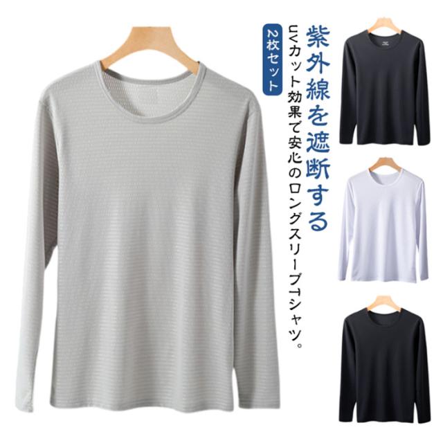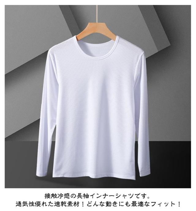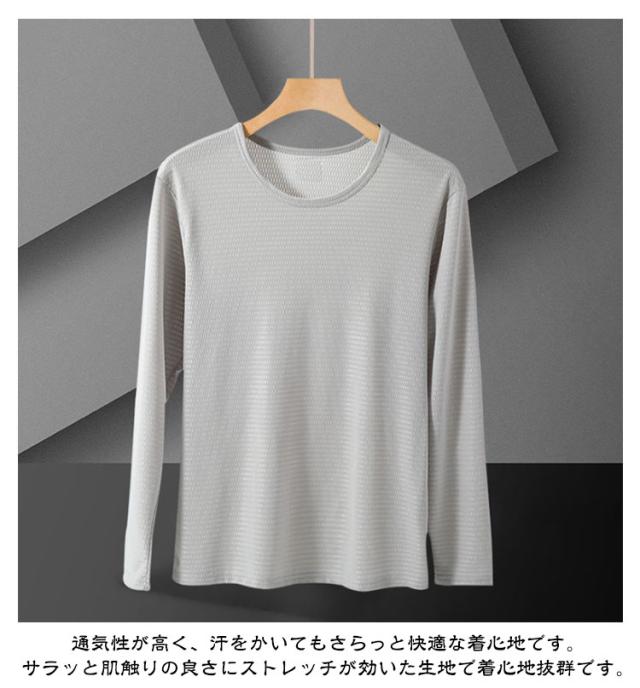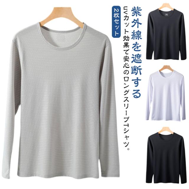 2枚セット 冷感インナー 長袖 tシャツ メンズ 夏 接触冷感 メッシュ tシャツ 吸汗速乾 ドライ 涼しい トップス アイスシルク 長袖tシャツ Tシャツ 薄手 ストレッチ 丸首 紫外線対策 作業服 作業着 トレーニングウェア ゴルフ 野球