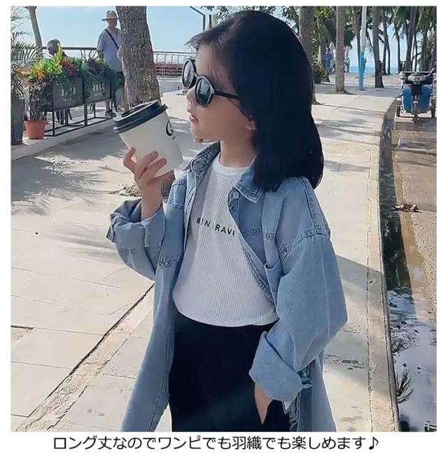 ジュニア シャツワンピース 女の子 100 ゆったり シャツワンピース デニムシャツ 送料無料 デニム チュニック ブラウス 子供 長袖 子供 カジュアルシャツ デニム 無地 薄手 羽織り 90 ロングシャツ 110 120 130 140 カットソー