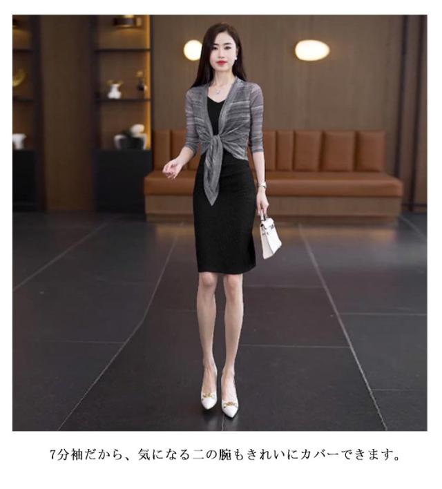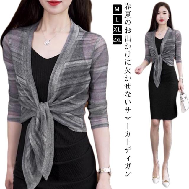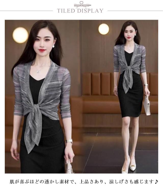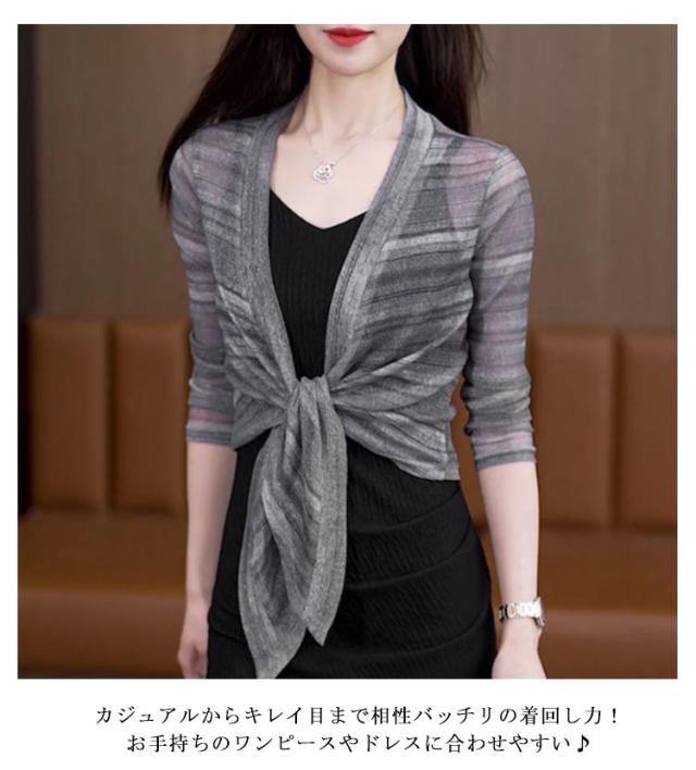 きれいめ 透け感 薄手 レディース フロント絞り シースルー ボレロ ショート丈 きれいめ サマーカーディガン 羽織り 女性 7分袖カーディガン カーディガン ボレロ 春夏 レイヤード 旅行 おしゃれ かわいい 体型カバー 大人 リボン結び