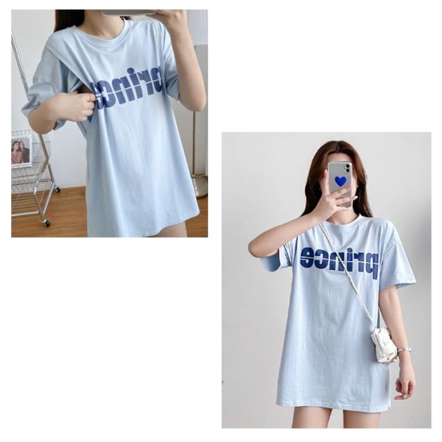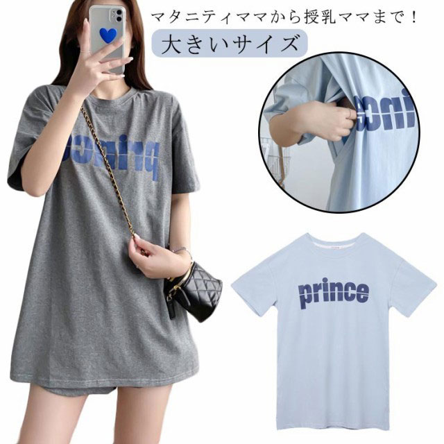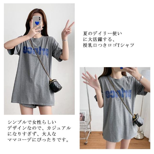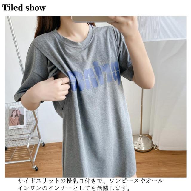 ロンt 授乳服 半袖 マタニティトップス 大きいサイズ ロング丈 授乳トップス 夏 授乳口つき ルームウェア 可愛い 体型カバー Tシャツ 産前 産後 兼用 妊婦服 レディース 妊婦 マタニティウェア 春夏