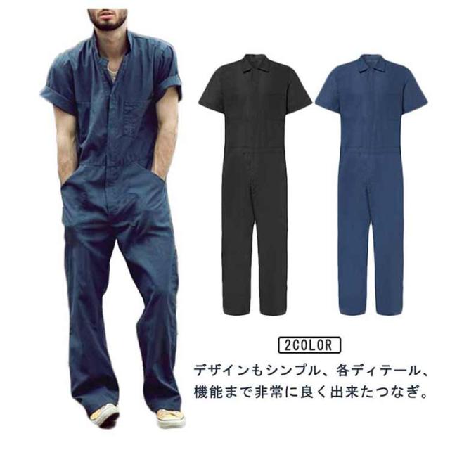 40代 動きやすい メンズ 大きいサイズ ツナギ オールインワン キャンプ 半袖 作業服 ワイド つなぎ 夏用 アウトドア 春夏 ストリート カジュアル レジャー 無地 薄手 30代 50代 ゆったり