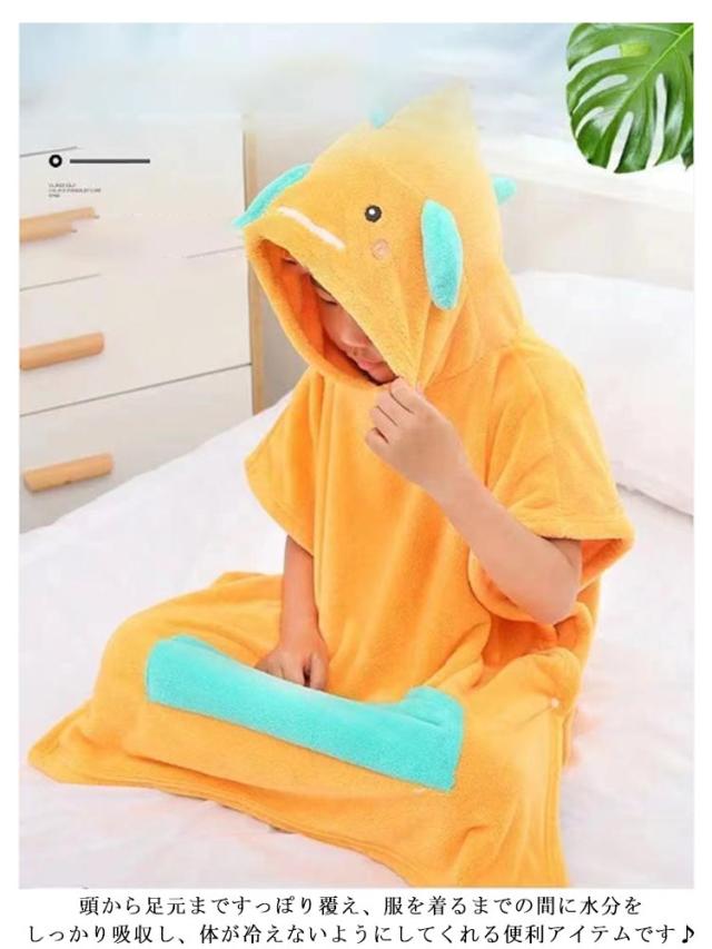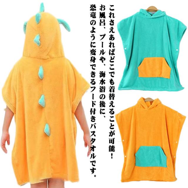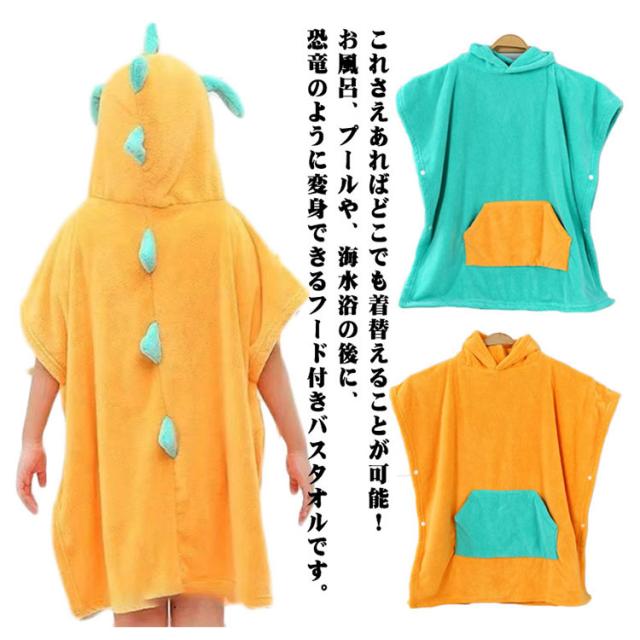恐竜 ポンチョタオル アニマルバスローブ 着替えタオル お着替えポンチョ ポンチョ タオル 湯上りタオル バスポンチョ バスタオル フード付き スイミング 着ぐるみ フードつき ベビーバスローブ ワンオペ お風呂 プール キッズ