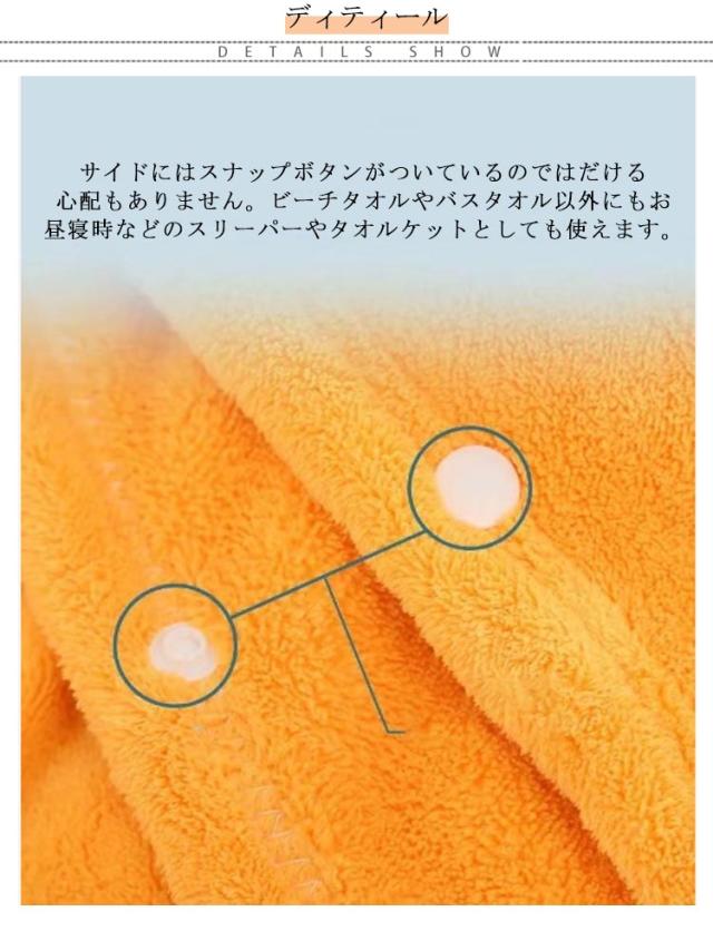 | これさえあればどこでも着替えることが可能!お風呂、プールや、海水浴の後に、恐竜のように変身できるフード付きバスタオルです。 頭から足元まですっぽり覆え、服を着るまでの間に水分をしっかり吸収し、体が冷えないようにしてくれる便利アイテムです♪ 吸水速乾のマイクロファイバー素材なので肌に優しく気持ちいい!何かとバタバタするお風呂の時間でもこれ一枚あればお子様の湯冷めの心配はありません。 サイドにはスナップボタンがついているのではだける心配もありません。ビーチタオルやバスタオル以外にもお昼寝時などのスリーパーやタオルケットとしても使えます。 0歳から6歳まで幅広く長く使えるので、出産祝いや節句祝い、ハーフバースデー、百日祝、入園祝いなど、誕生日プレゼントやクリスマスギフトなどにも最適です。 | |